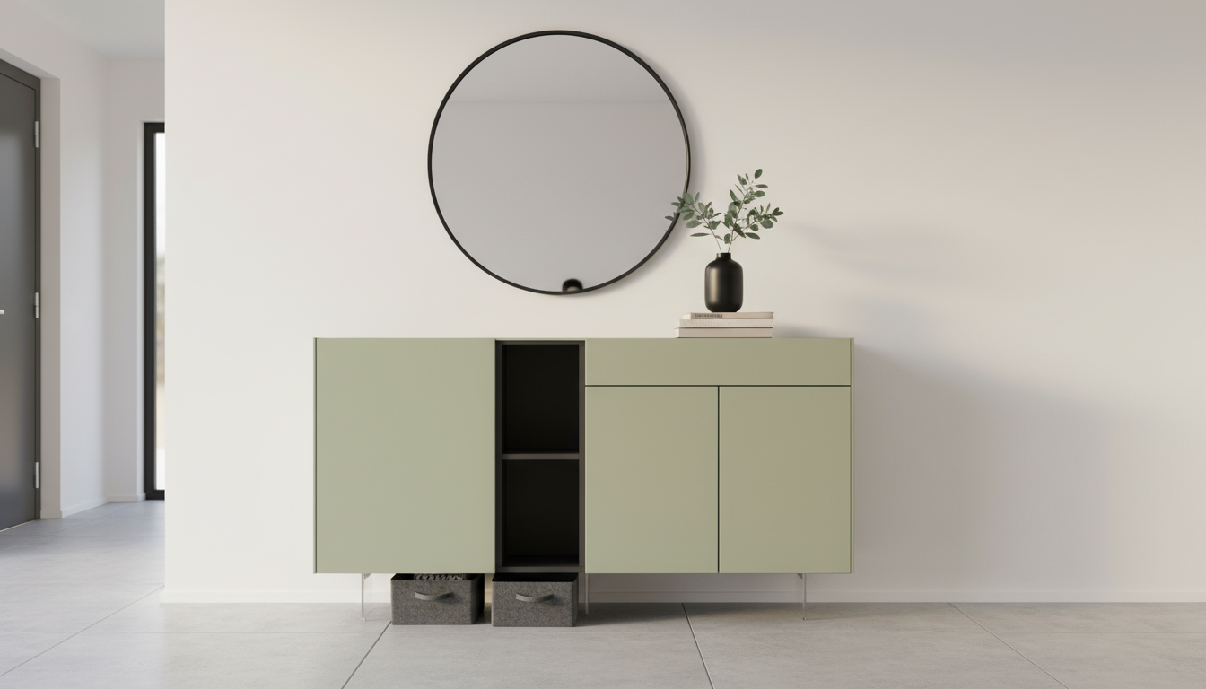 Ofrece una estética moderna, buena capacidad de almacenaje y una distribución práctica para organizar y decorar al mismo tiempo.