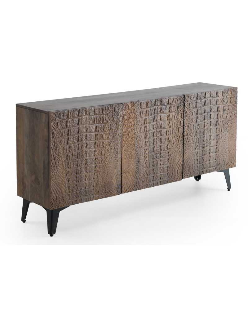 Aparador de diseño moderno con acabado en relieve que imita la textura de cocodrilo. Ideal para salones contemporáneos, ofrece gran capacidad de almacenamiento y un toque sofisticado y elegante a cualquier espacio.
