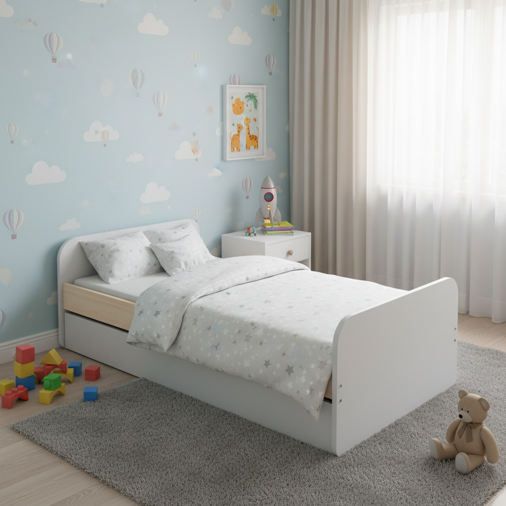 La bicama Esteban destaca por su estructura robusta y minimalista, con laterales elevados que protegen y delimitan el espacio de descanso superior. El cabecero integrado ofrece un apoyo cómodo para leer o relajarse, mientras que la cama inferior se desliza con facilidad para su uso independiente. Fabricada con materiales resistentes, integra cajones o somieres fijos que maximizan el aprovechamiento del área, aportando un toque nórdico y atemporal a cualquier estancia. Su acabado natural resalta la calidez de la madera, facilitando la integración en decoraciones variadas y promoviendo un ambiente ordenado y acogedor para el día a día familiar. Perfecta para hermanos o invitados ocasionales, equilibra estética y utilidad sin recargar visualmente el cuarto.