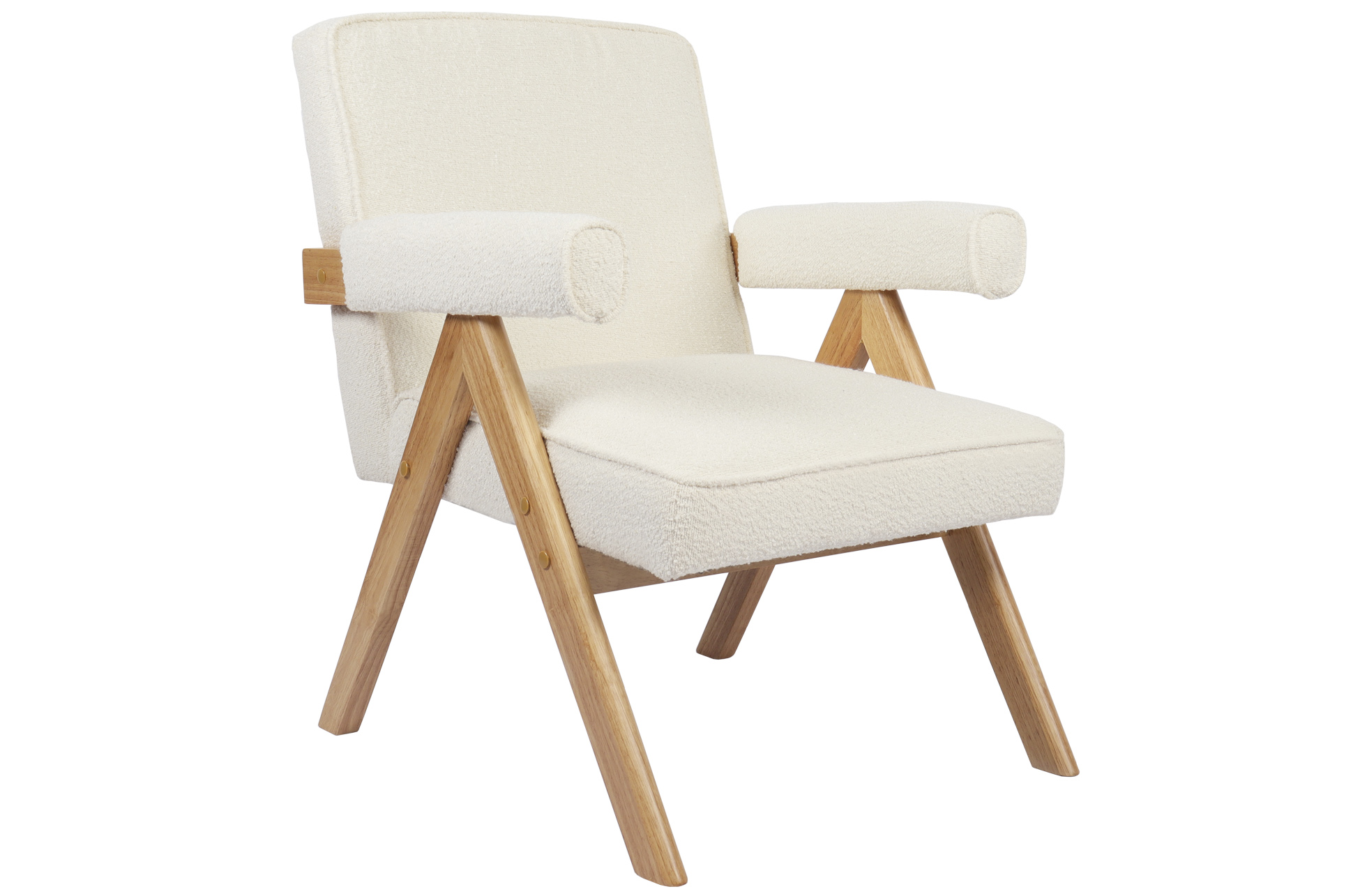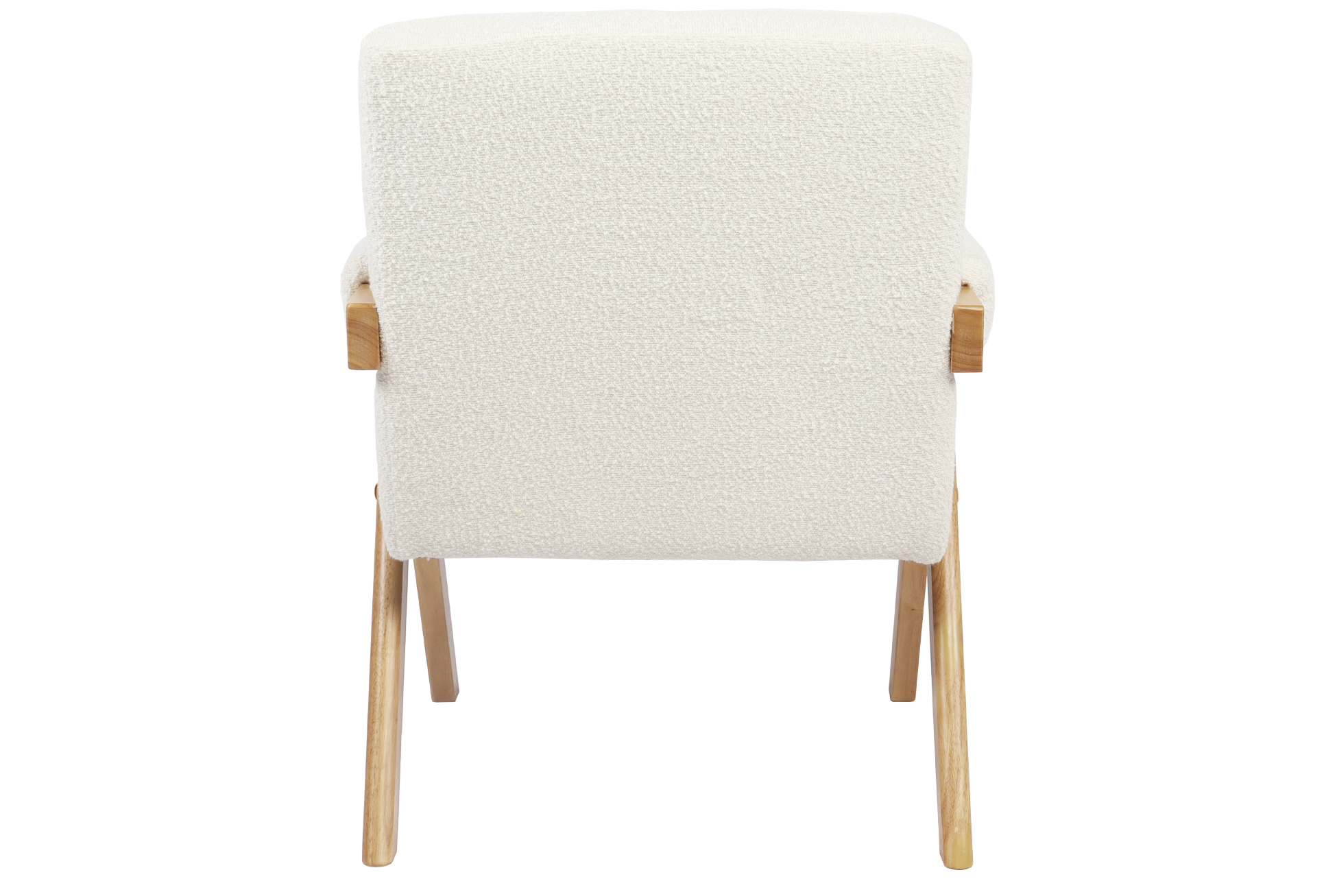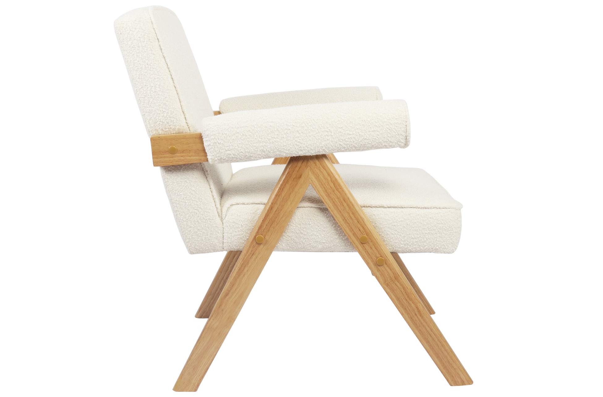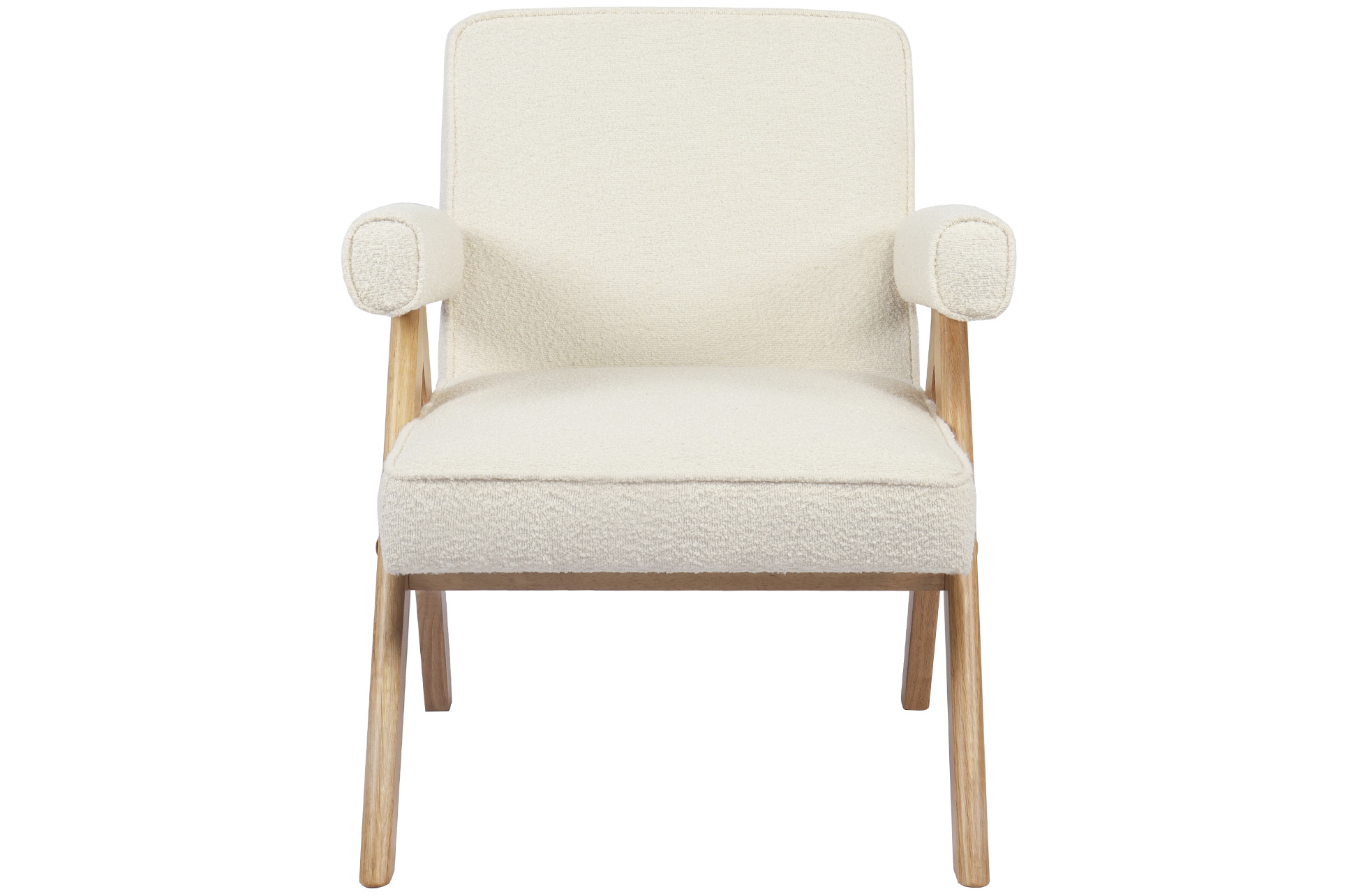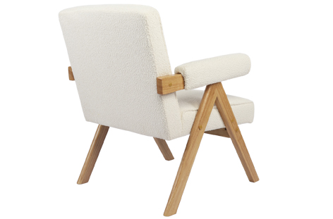 • Estructura resistente en madera maciza de acabado natural. • Tapizado en tejido tipo lino, agradable y suave al tacto. • Asiento acolchado para una sentada cómoda y de uso diario. • Respaldo amplio que aporta buen apoyo y confort. • Apoyabrazos tapizados y acolchados para mayor comodidad. • Diseño de estilo nórdico, ligero y fácil de integrar en distintas estancias. • Butaca fija con base de cuatro patas en madera para una buena estabilidad.