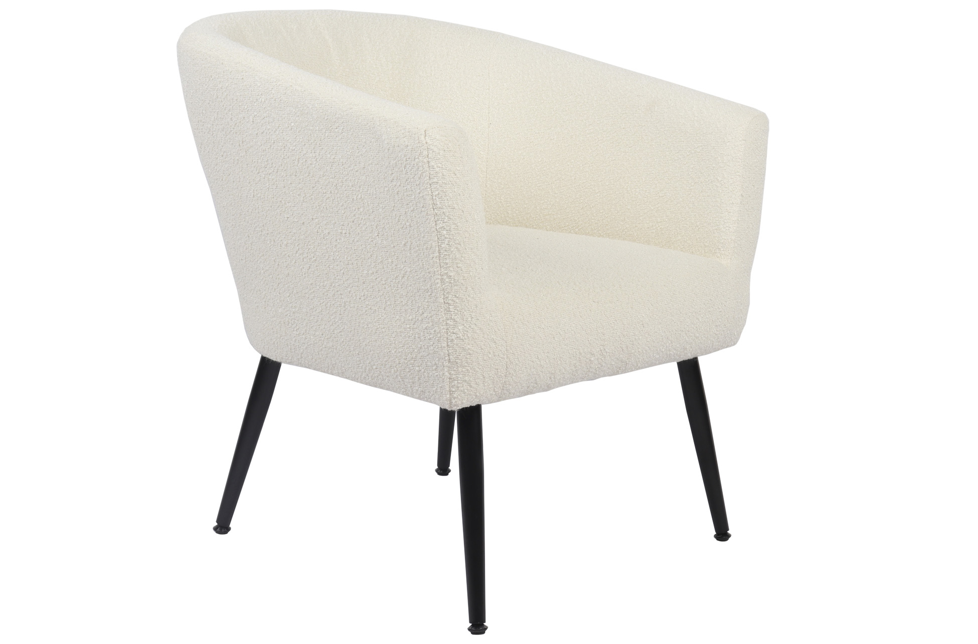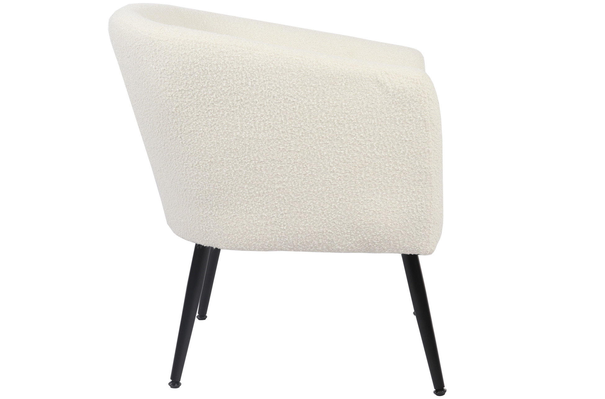 • Respaldo circular envolvente para mayor comodidad. • Asiento acolchado con espuma de alta densidad. • Estructura interna resistente para uso diario. • Tapizado texturizado de tacto suave y agradable. • Patas metálicas en acabado negro, de gran estabilidad. • Estilo contemporáneo, apto para diferentes ambientes decorativos. • Uso recomendado en salón, dormitorio o zona de lectura.
