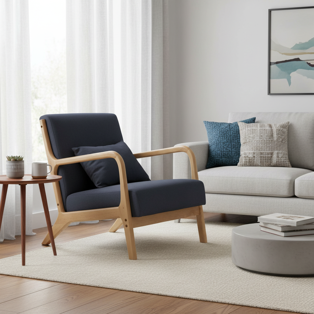 La butaca Tokio combina un diseño depurado con líneas suaves y una estructura de madera vista que aporta calidez a cualquier ambiente. Su asiento y respaldo acolchados en tejido de microfibra ofrecen una comodidad envolvente y muy agradable al tacto, ideal para largas horas de lectura o descanso. Los reposabrazos de madera integrados refuerzan la sensación de estabilidad y permiten una postura cómoda y relajada. Gracias a su estilo atemporal encaja perfectamente en salones modernos, ambientes nórdicos o espacios de espera, aportando un toque elegante sin recargar la decoración.