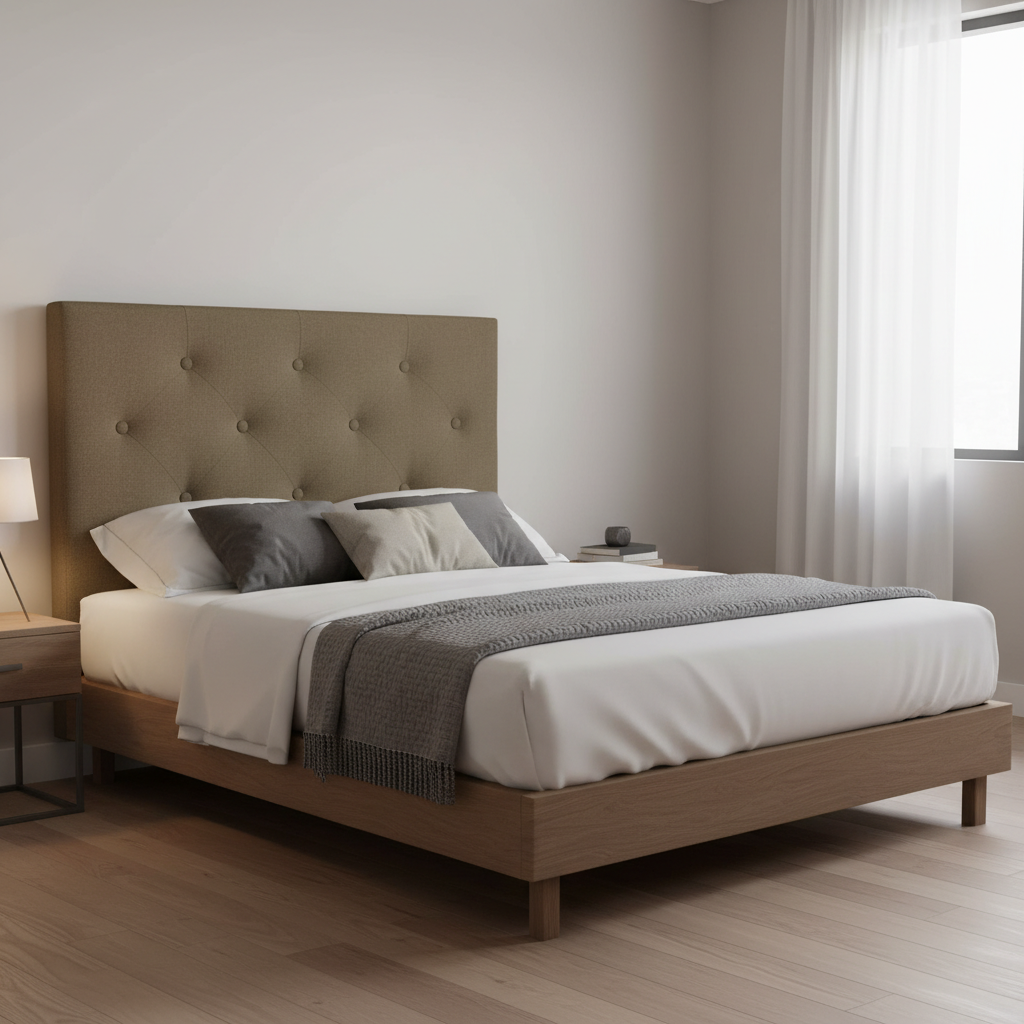 • Estructura interior de madera o aglomerado de alta resistencia para soportar el uso diario. • Acolchado con espuma de 8-9 cm de grosor para un soporte ergonómico y comodidad óptima. • Tapizado en telas o polipiel personalizables, con colores y texturas a elegir según preferencias. • Patas con tacos de goma antideslizantes para proteger el suelo y mayor estabilidad. • Parte trasera forrada con TNT para evitar daños en la pared y facilitar la instalación. • Anclaje opcional a la pared para seguridad y fijación firme. • Medida de ancho personalizada adaptable a diferentes tamaños de cama.