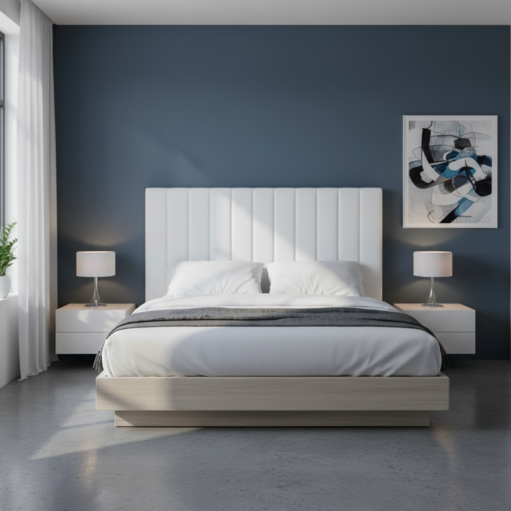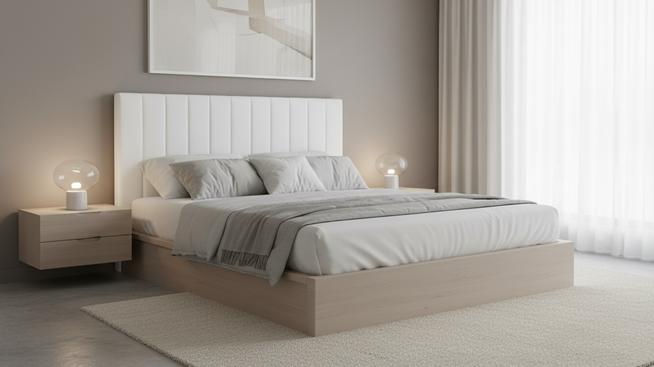 Cabecero tapizado de líneas verticales acolchadas, diseño sencillo y elegante que aporta un estilo moderno al dormitorio. Ofrece una superficie confortable para apoyar la espalda y combina fácilmente con distintos ambientes y tipos de cama.