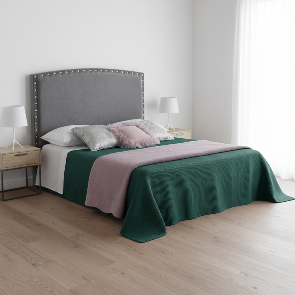 Ofrece un respaldo cómodo, protege la pared y añade un toque elegante al dormitorio sin recargar la decoración.