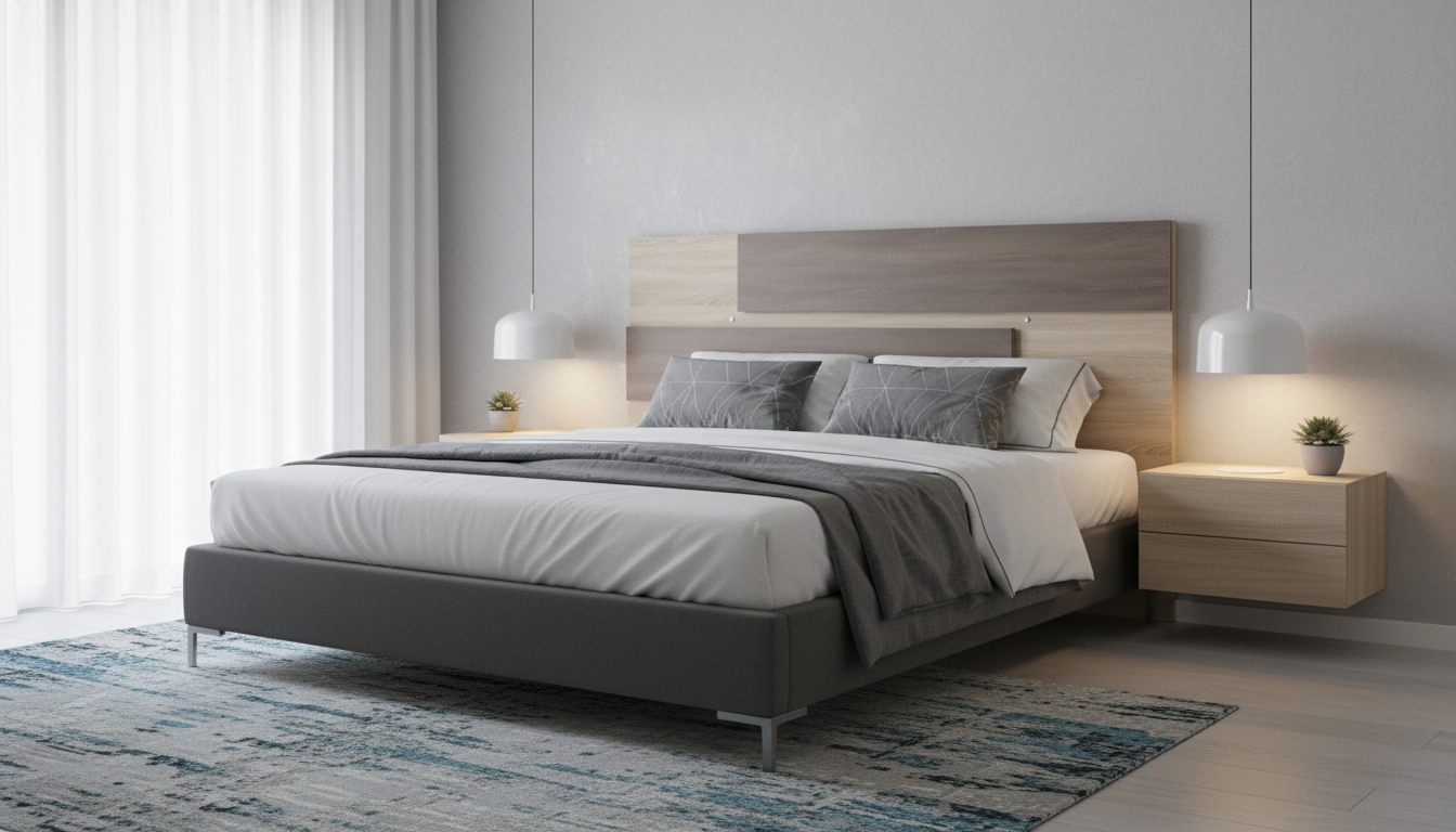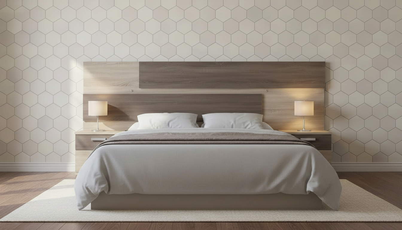 Aporta calidez natural, profundidad visual y un diseño moderno que eleva la decoración del dormitorio sin necesidad de elementos adicionales.