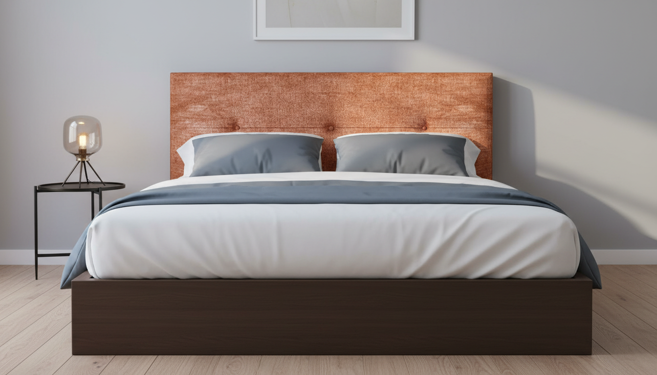 Cabecero tapizado de diseño rectangular minimalista. Ofrece comodidad acolchada y estilo sencillo para el dormitorio.