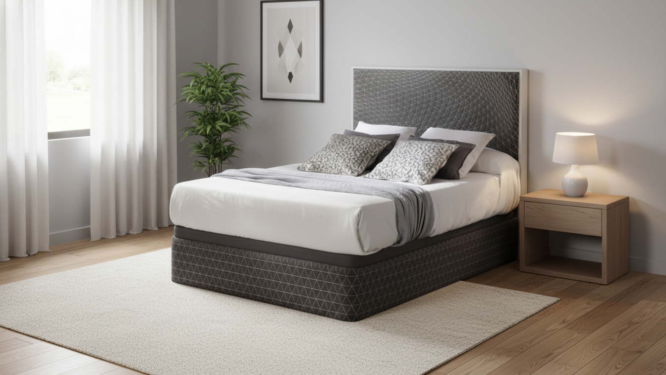 Aporta confort al apoyarse, protege la pared del frío y añade un toque decorativo moderno al dormitorio.