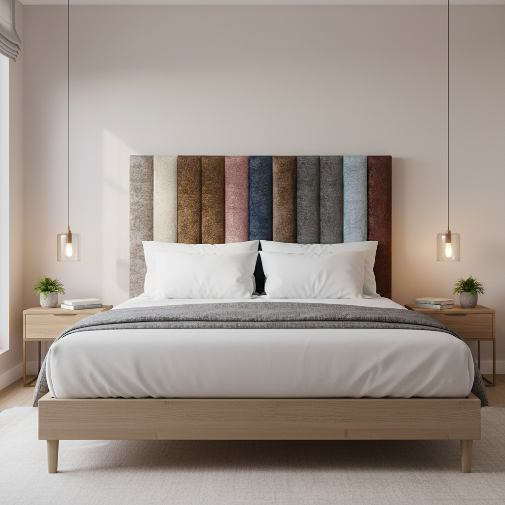Aporta dinamismo visual, protege la pared y mejora el confort al apoyarse, elevando el estilo del dormitorio.