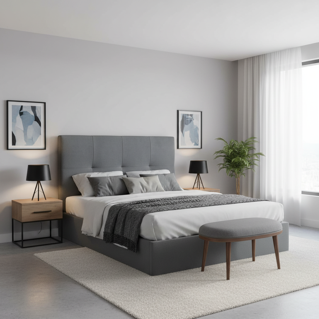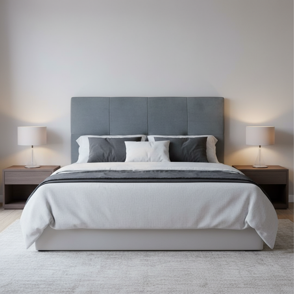 Ofrece un respaldo cómodo y mullido, protege la pared y aporta un toque decorativo moderno sin recargar el espacio. Además, su diseño recto hace que encaje bien en dormitorios pequeños o minimalistas.