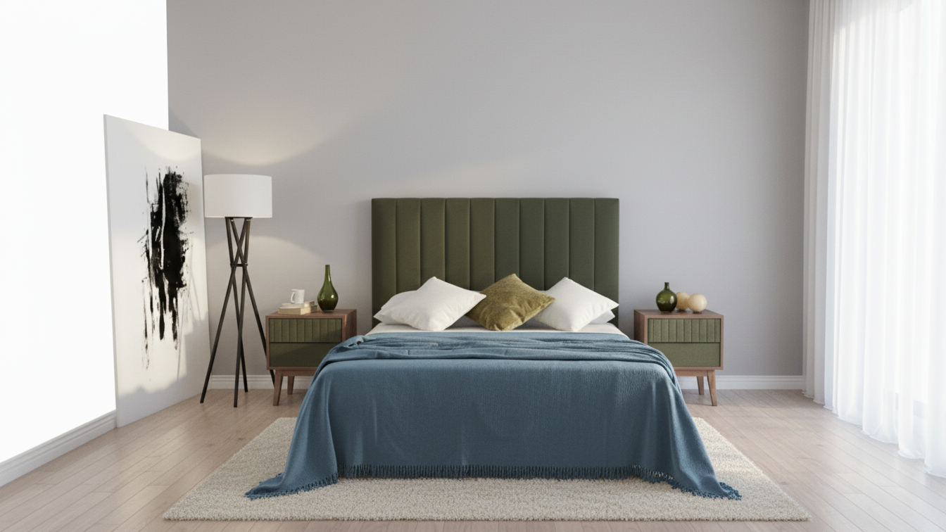 Aporta elegancia moderna, comodidad al apoyarse y hace que el dormitorio parezca más amplio gracias a su diseño vertical.