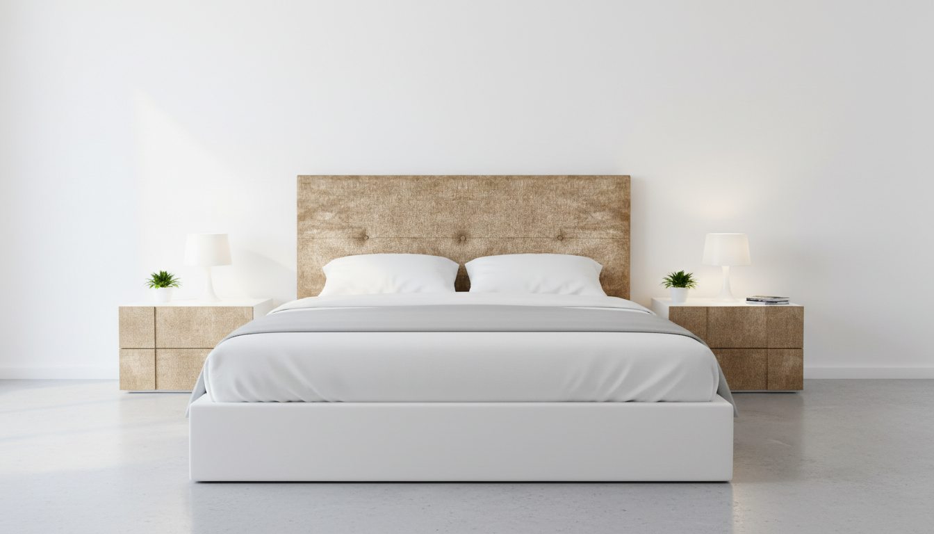 Cabecero tapizado con capitoné acolchado y botones centrales. Proporciona confort y elegancia al dormitorio.