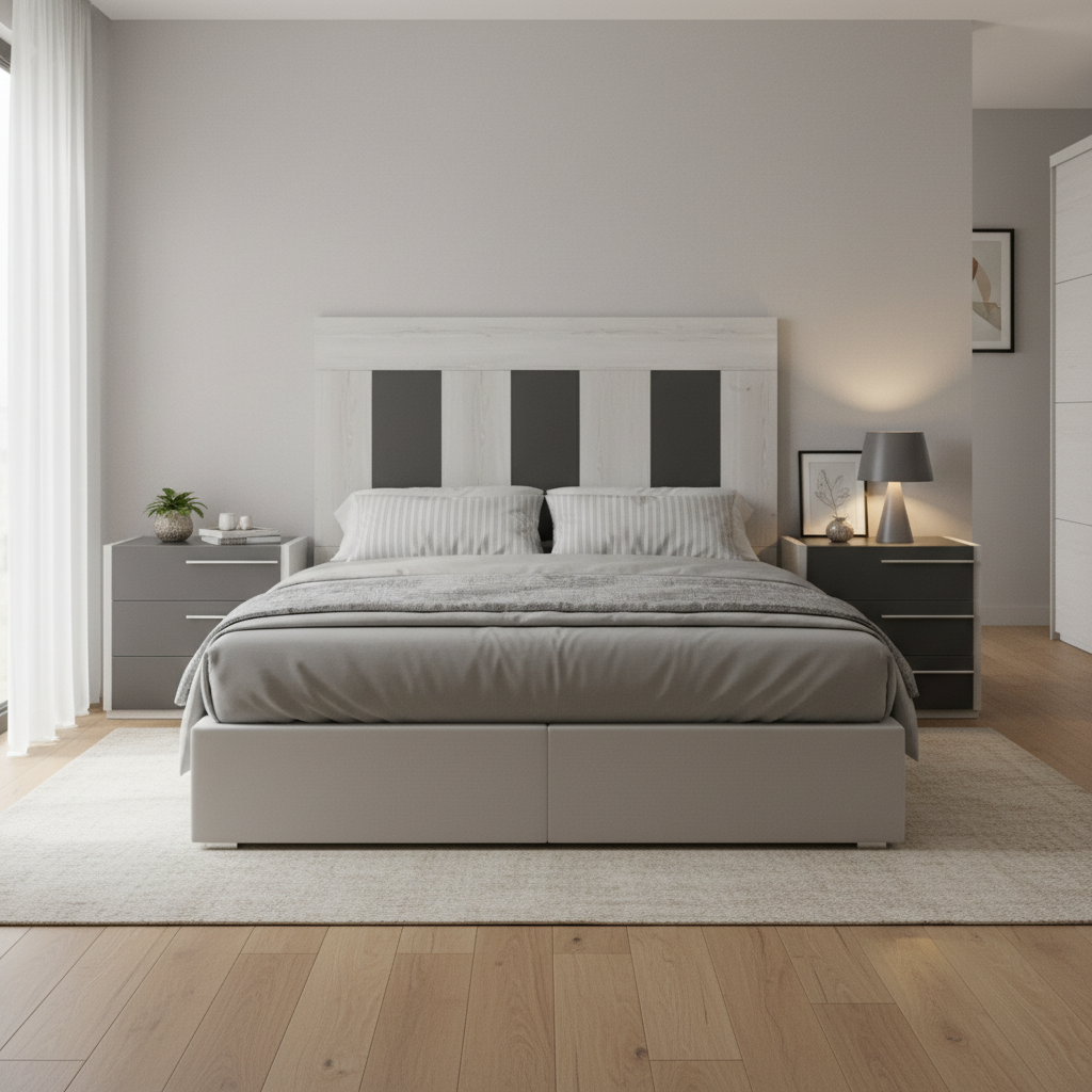 Aporta un diseño moderno y minimalista que eleva la estética del dormitorio, con estructura resistente y fácil instalación en pared.
