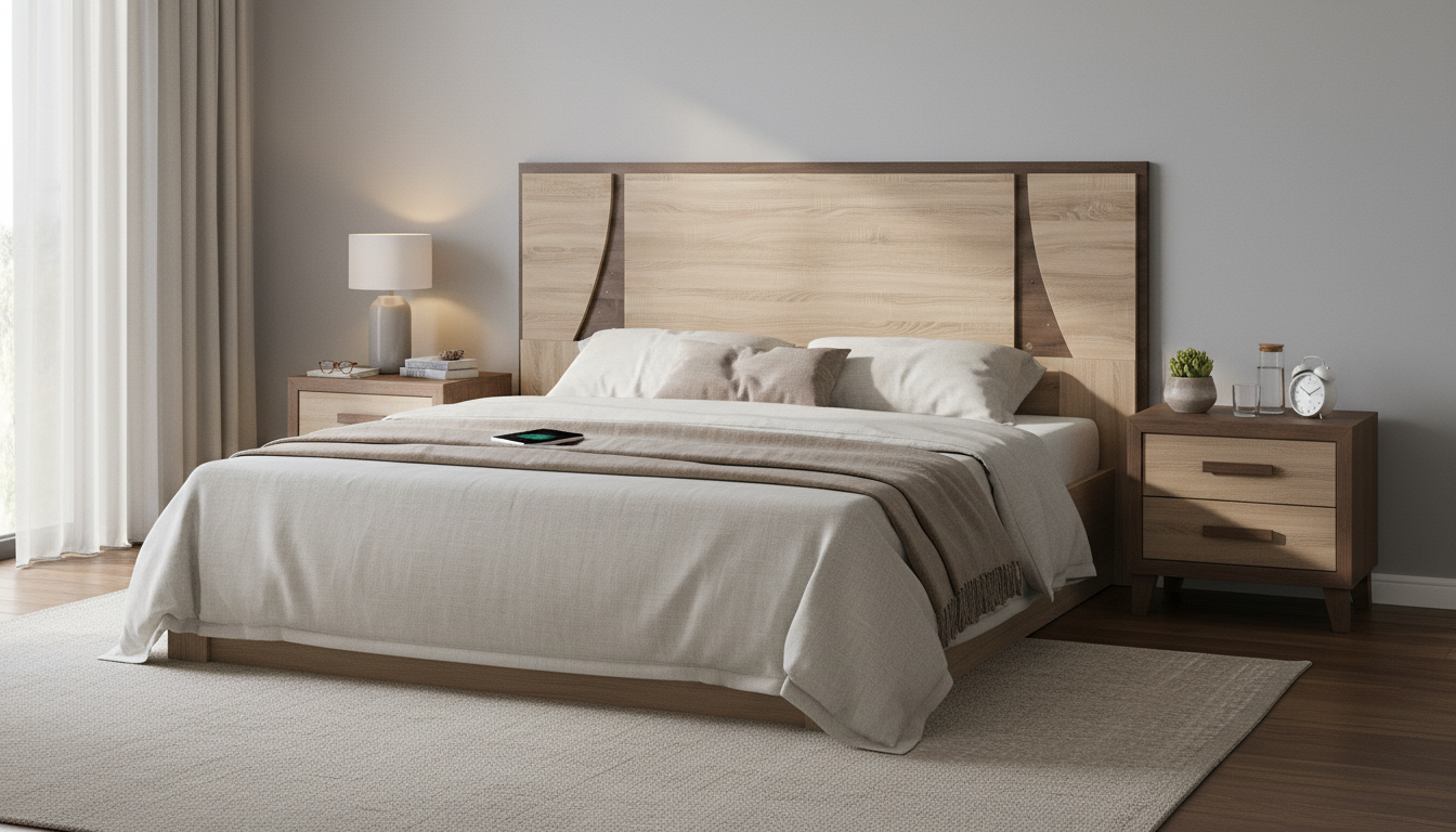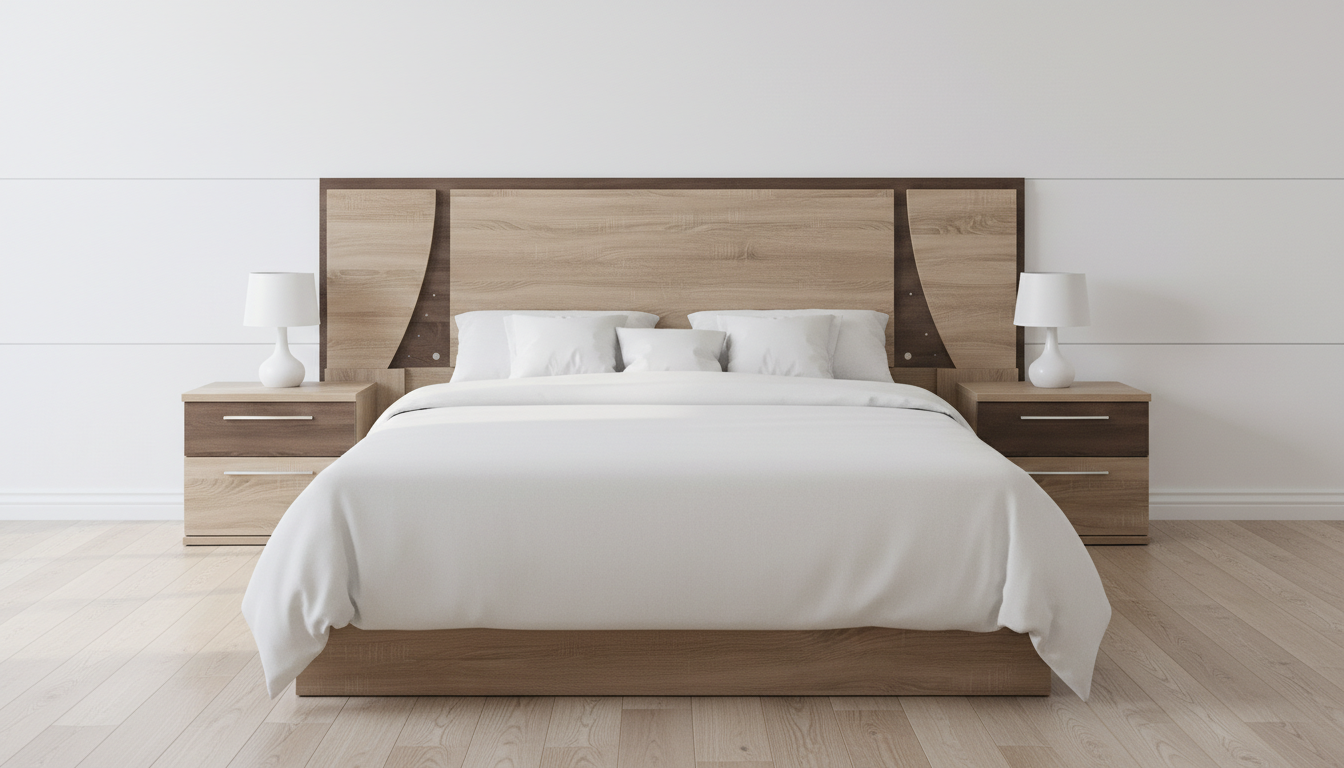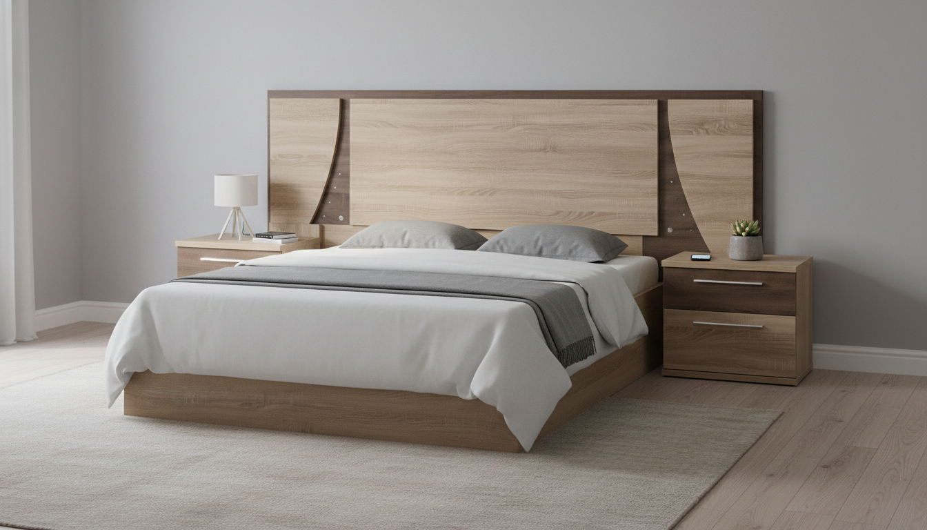 Aporta un diseño moderno y geométrico que eleva la decoración del dormitorio, con paneles abatidos que dan profundidad visual y sensación de amplitud.