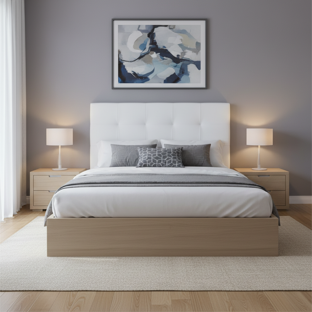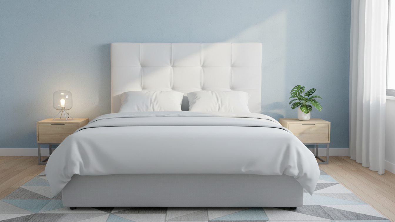 Cabecero tapizado moderno de líneas rectas, perfecto para camas de 105 cm gracias a sus medidas de 105x115x7 cm, que permiten un encaje visual equilibrado y elegante en dormitorios juveniles o de matrimonio. Su acolchado uniforme, con ligero efecto capitoné liso, proporciona una cómoda superficie de apoyo para leer o ver la televisión, al mismo tiempo que protege la pared y aporta sensación de orden y amplitud en la habitación. Fabricado con estructura interna de madera y espuma de alta densidad, combina confort y resistencia para un uso diario prolongado.