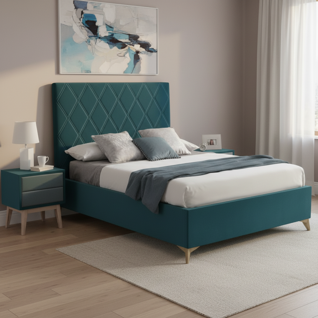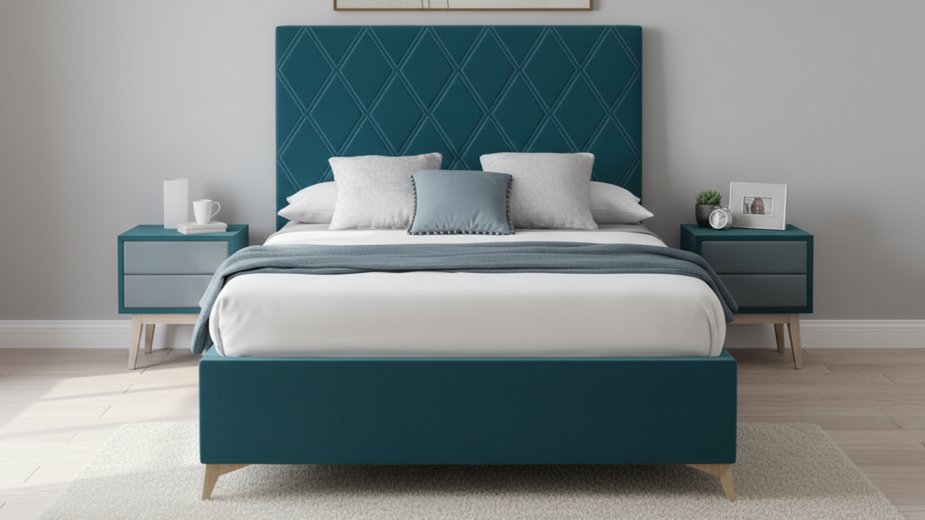 Cabecero capitoné rombos tapizado, con relieve elegante y acolchado suave para máximo confort.