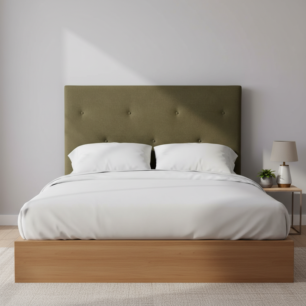 Cabecero tapizado capitoné con botones y patas elevadas. Aporta elegancia y comodidad al dormitorio.