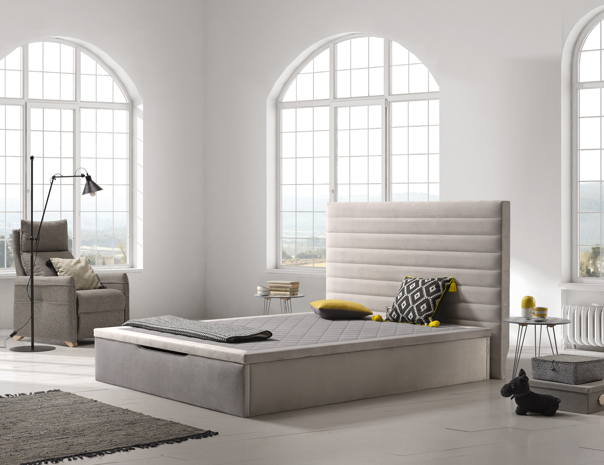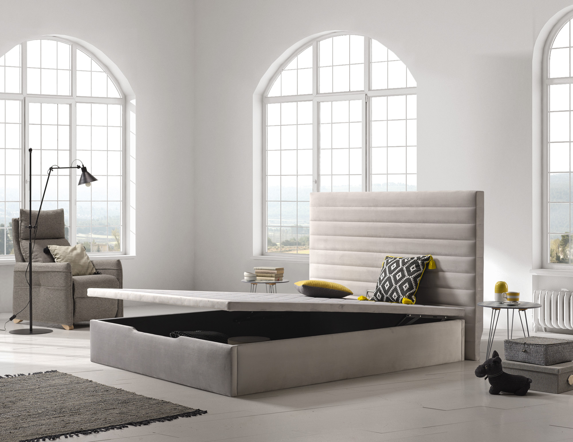 El canapé tapizado modelo Mónaco destaca sobre los demás por su gran calidad y apertura frontal en forma de uñero, sin tirador, resultando en un diseño mucho más elegante.