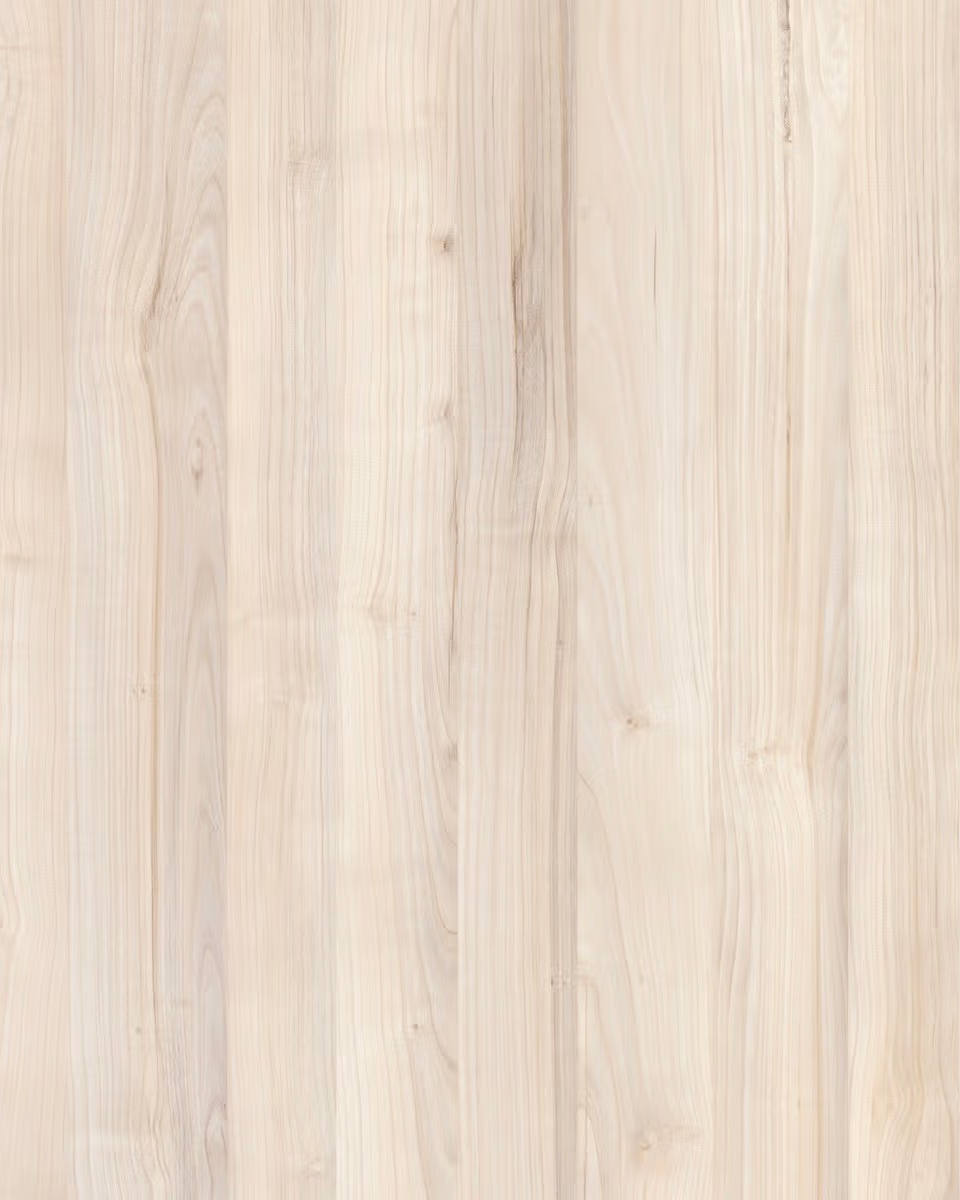 Composición de salón moderna de líneas rectas, acabada en madera clara y blanco mate. Incluye mueble bajo para TV y vitrina alta con estantes abiertos. Diseño elegante, ideal para espacios contemporáneos y funcionales.