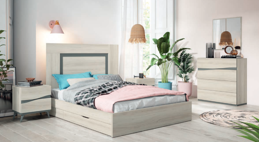 El dormitorio Rhea es un excelente dormitorio para aquellos que busquen algo simple y fácil de limpiar, gracias a una extensa variedad de medidas, se adapta a cualquier hogar.