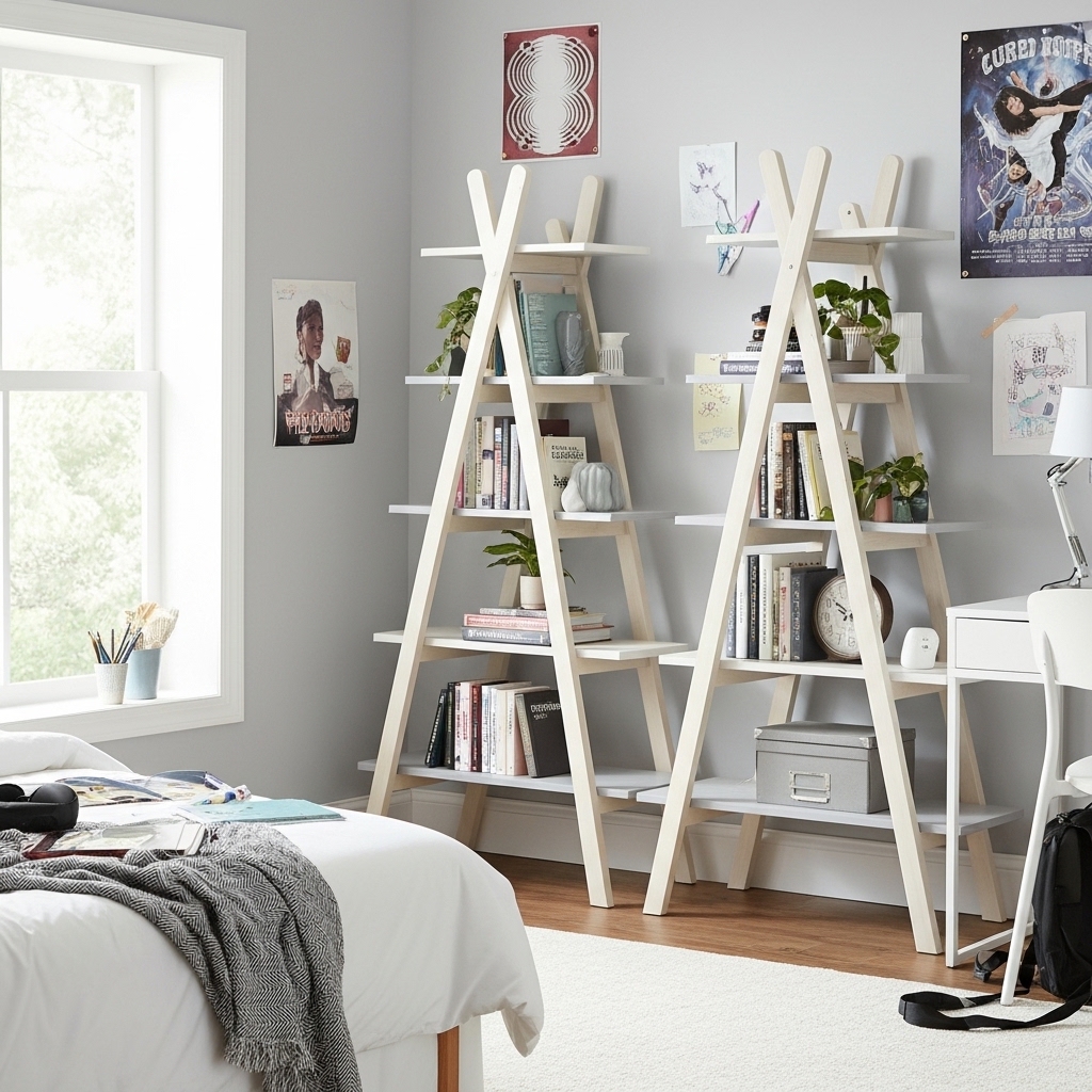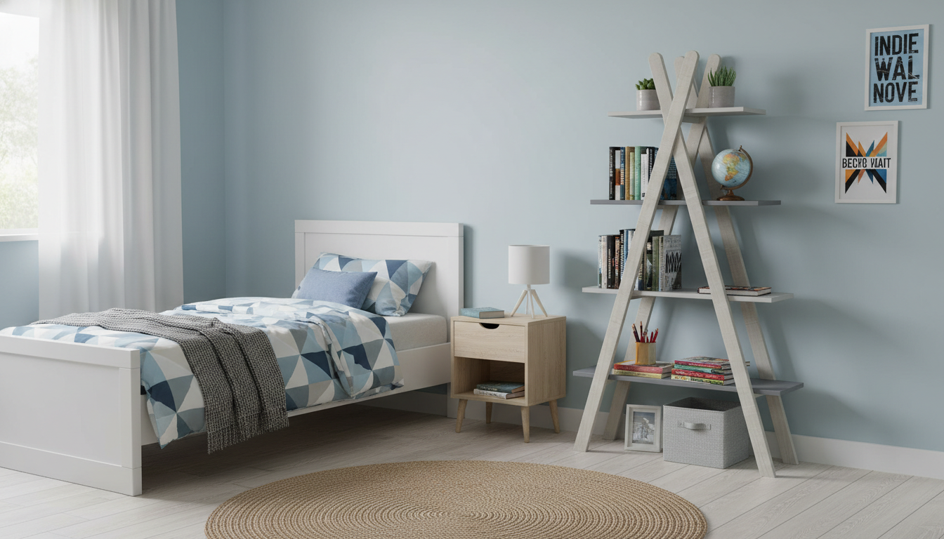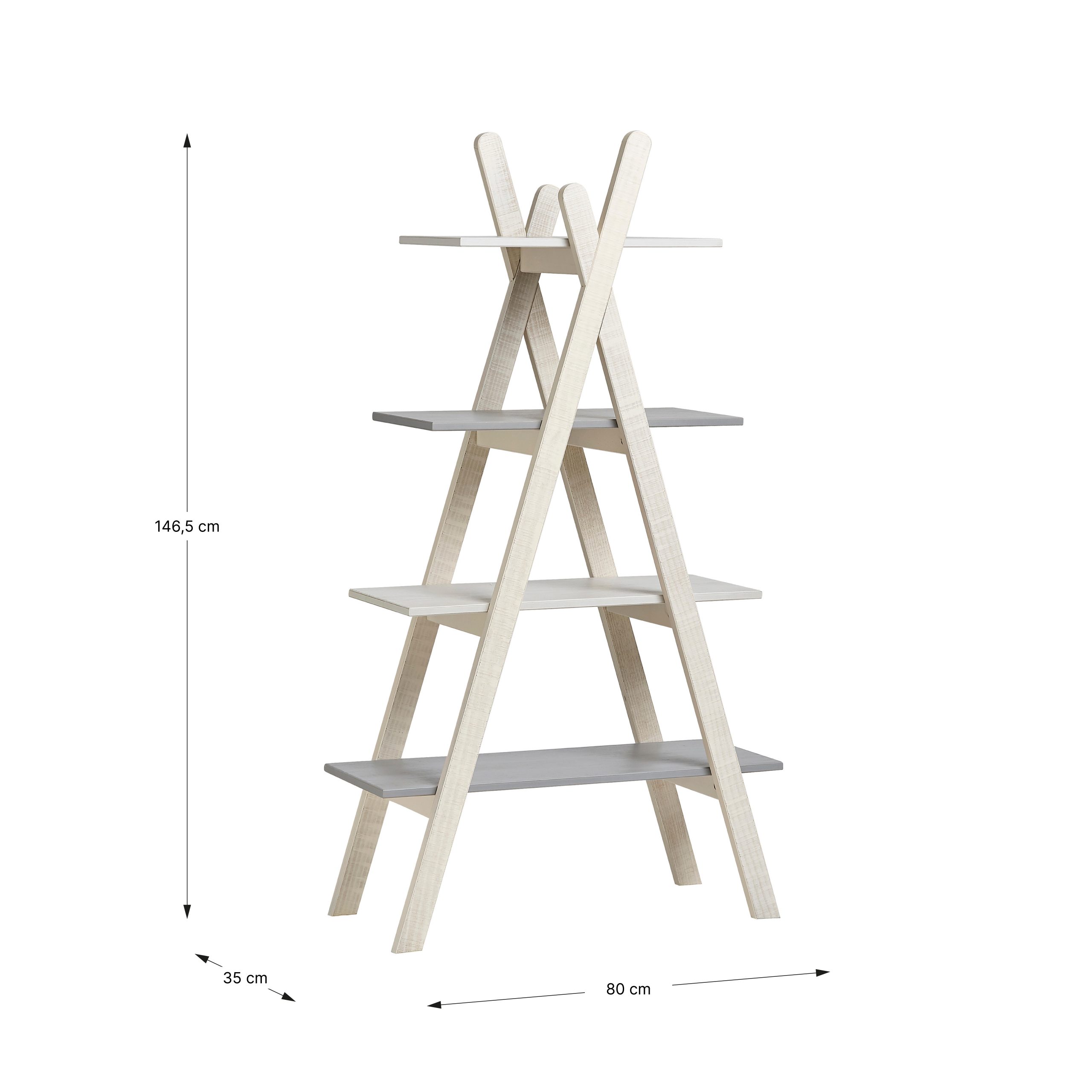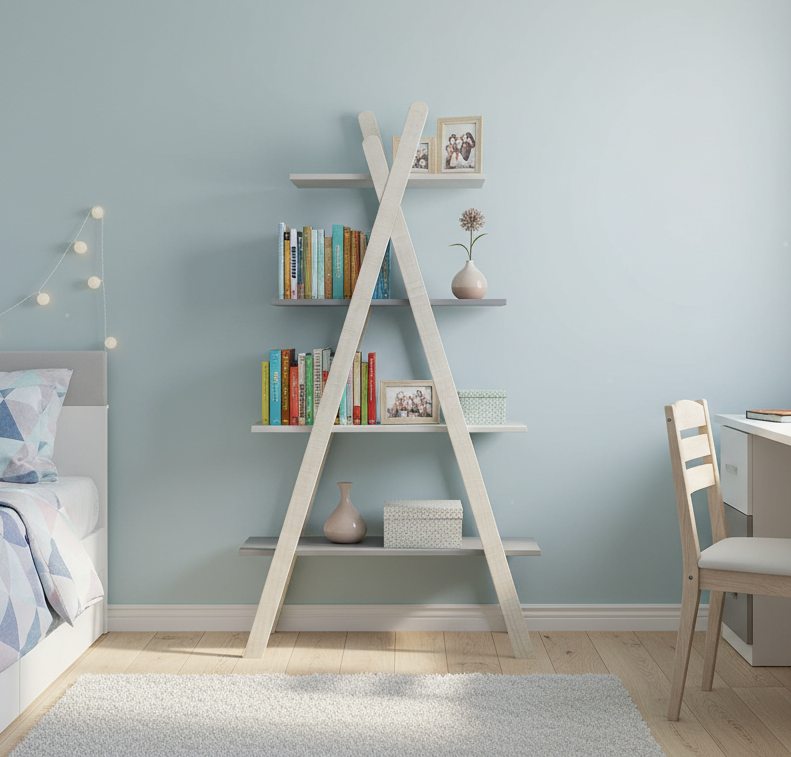 La estantería SIA destaca por su diseño triangular innovador y práctico, ideal para optimizar espacios en hogares modernos. Fabricada con una combinación de madera de pino en la estructura y DM en los estantes, ofrece un aspecto nórdico elegante que se adapta a habitaciones infantiles, juveniles o salones. Su forma en A con cuatro niveles permite organizar libros, decoración u objetos cotidianos de manera visual y accesible, aportando un toque original sin ocupar mucho suelo.