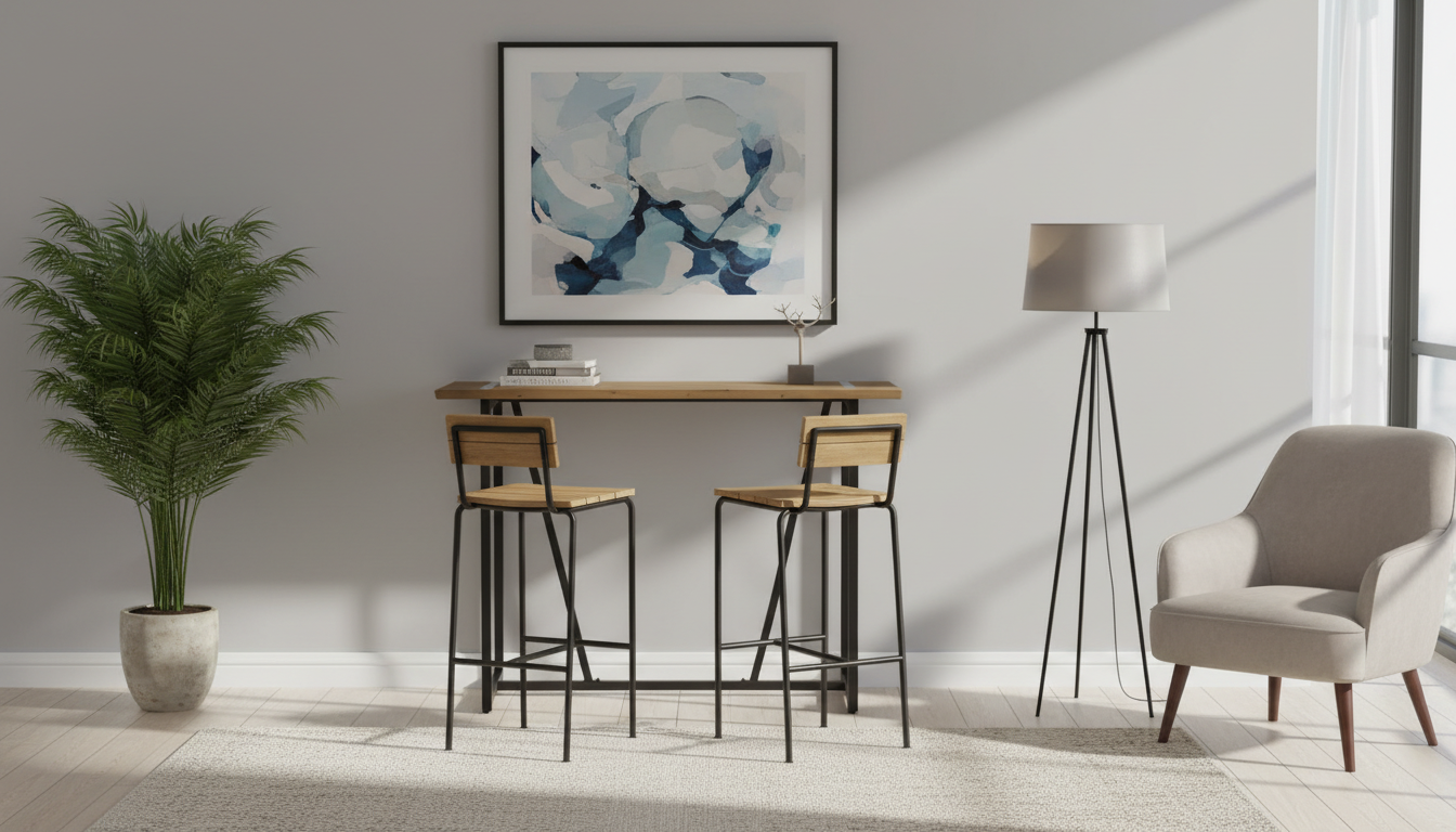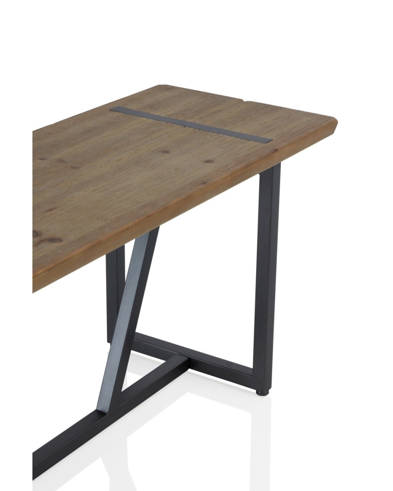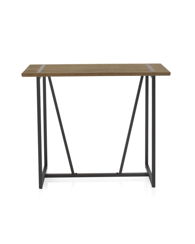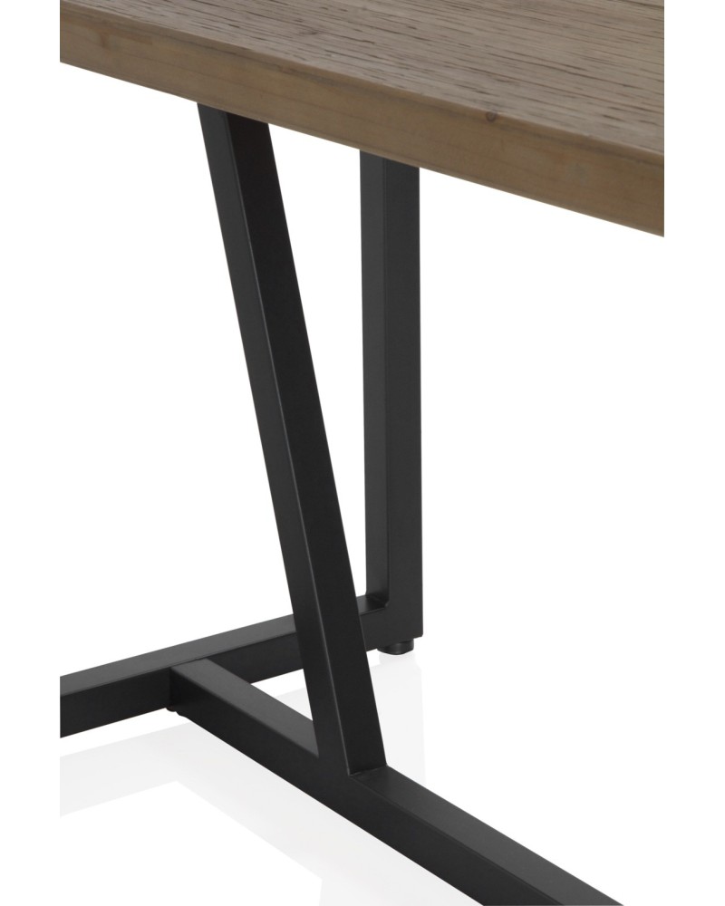 La mesa alta de bar combina un diseño industrial robusto con un sobre de madera natural de abeto y estructura metálica negra. Ideal para cocinas modernas, bares o terrazas, ofrece estabilidad y estilo vintage sin comprometer la funcionalidad diaria. Sus patas en forma de V con protectores evitan rayones en el suelo, mientras el sobre atamborado de 2,5 cm de grosor resalta la textura natural de la madera. Las medidas precisas son 130 cm de largo, 70 cm de ancho y 105 cm de alto, con una distancia interna entre patas de 98 cm para mayor comodidad. Este modelo destaca por su resistencia al uso intensivo, fácil integración en espacios contemporáneos y mantenimiento sencillo con un paño húmedo. Perfecta para catering informale o como barra auxiliar, su acabado natural aporta calidez auténtica al ambiente.