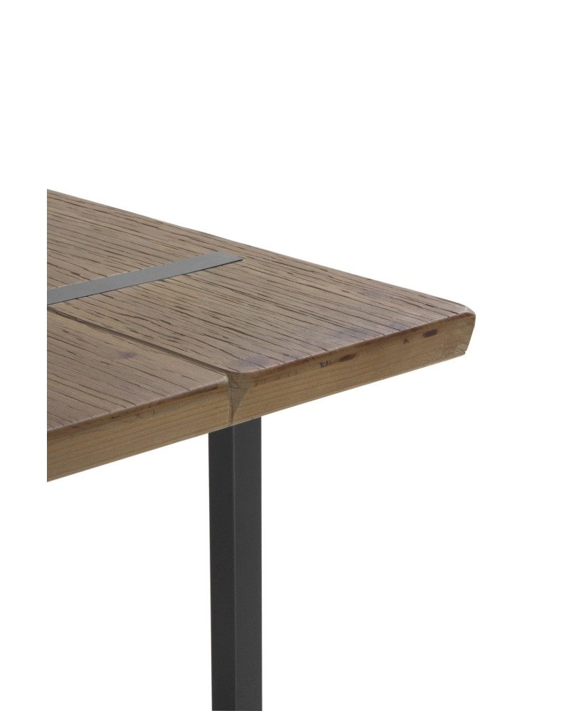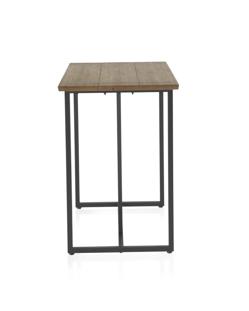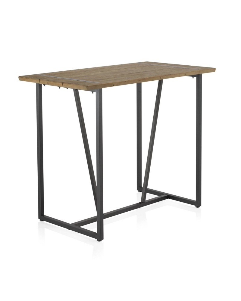 Mesa alta de bar con sobre de madera natural de abeto y patas metálicas negras en diseño industrial. Estable, robusta y con protectores de suelo para uso diario. Estilo vintage moderno.