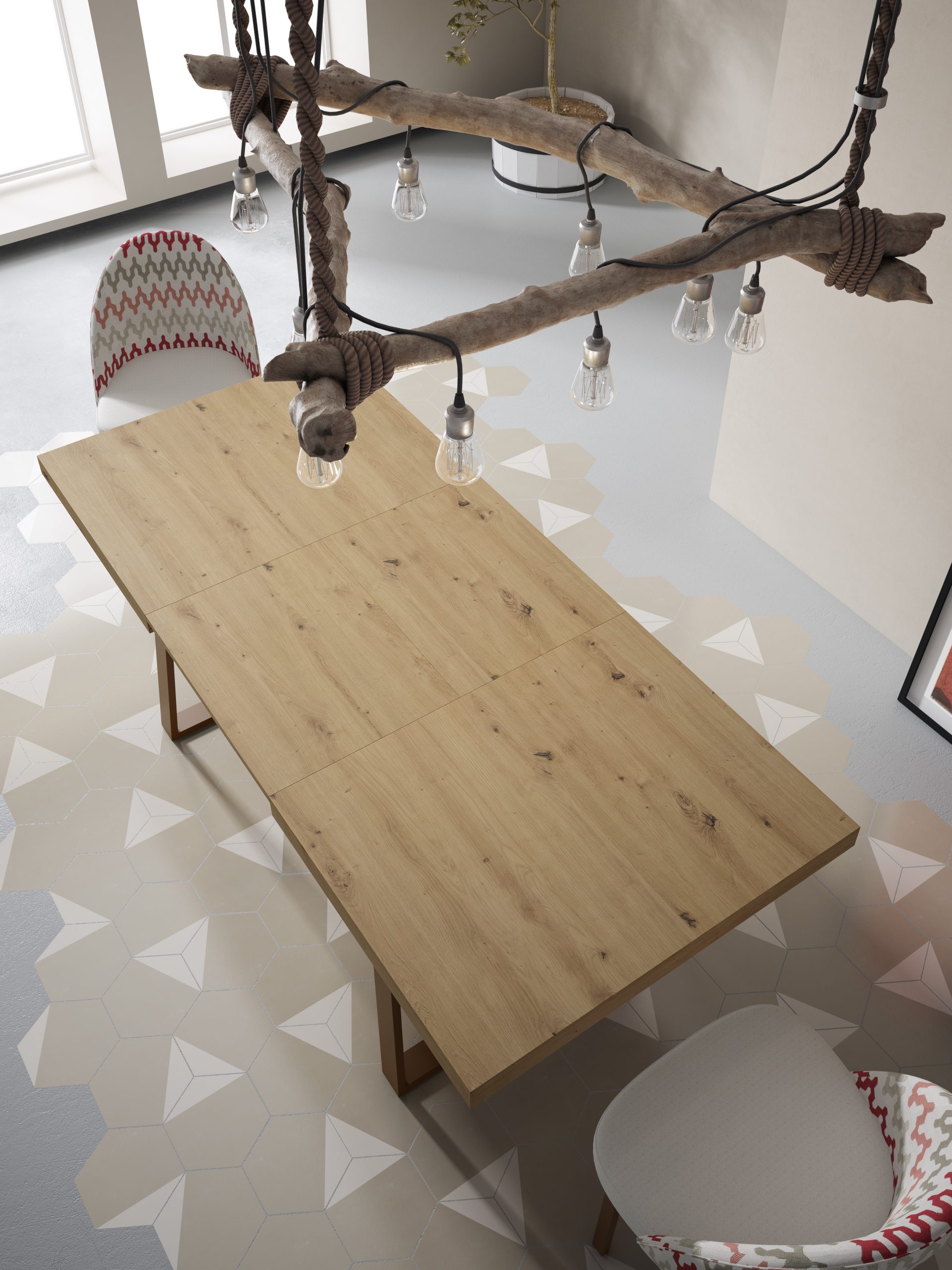 Esta mesa ofrece un diseño moderno con patas metálicas inclinadas que le dan un aspecto elegante y actual, ideal para comedores contemporáneos. Además, el sobre de madera aporta calidez visual y combina bien con distintos estilos de sillas y decoración.MESA.jpg