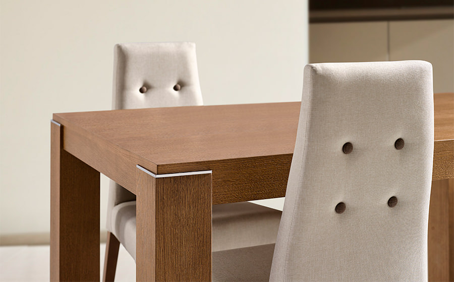 La mesa CUBA está fabricada en madera maciza con un diseño minimalista y líneas rectas que realzan su estética contemporánea. Se aprecian patas robustas y un tablero rectangular de perfil grueso, lo que garantiza estabilidad y resistencia estructural. El acabado natural de la madera aporta calidez al espacio, permitiendo que combine fácilmente con diferentes estilos de decoración. Además, destaca por la integración discreta de extensiones laterales, ocultas bajo el sobre principal, lo que aumenta la funcionalidad del mueble al adaptarse a diversas necesidades de espacio. Este tipo de mesa resulta ideal para comedores modernos y ambientes de concepto abierto gracias a su carácter versátil y elegante.