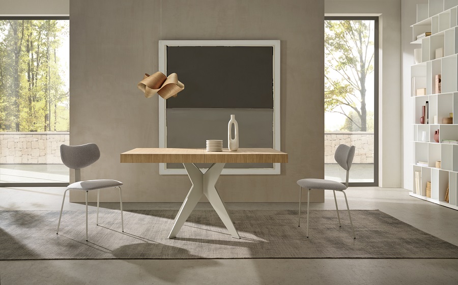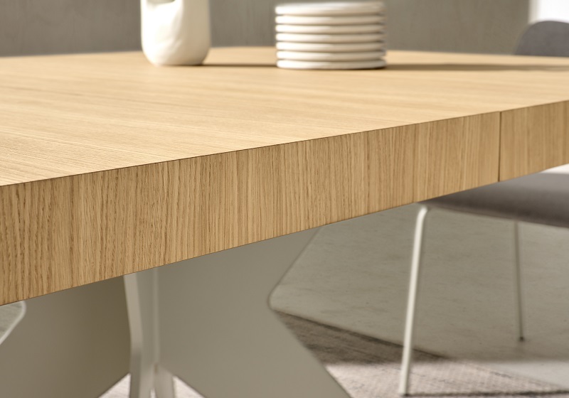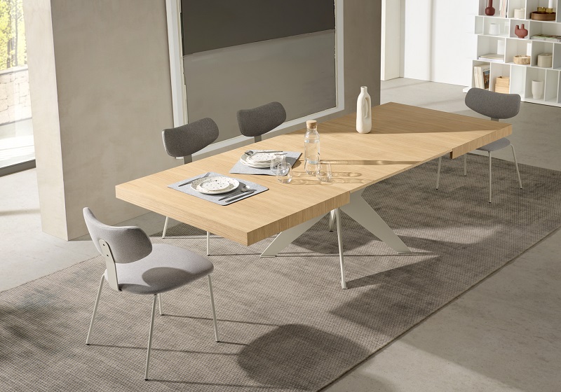 Mesa de diseño moderno con líneas rectas y una estructura geométrica, ideal para ambientes contemporáneos y minimalistas. Su base metálica cruzada aporta estabilidad y sofisticación, mientras la tapa de la mesa ofrece una superficie amplia para reuniones, trabajo o comidas.