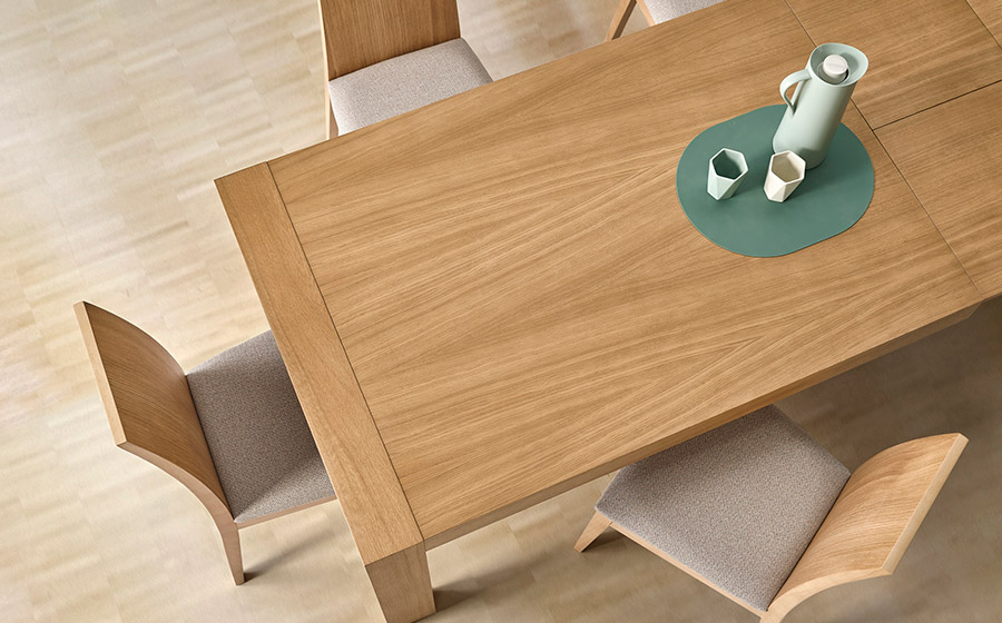Sí, la mesa Évora está pensada para su uso en comedores gracias a su sistema extensible y materiales resistentes, como melamina y chapas naturales de haya o roble. Permite ajustar el tamaño según el número de comensales, lo que la hace perfecta para reuniones familiares, uso diario y ocasiones especiales en el hogar.