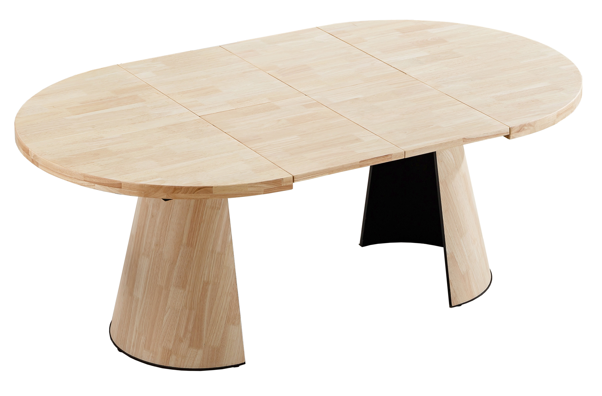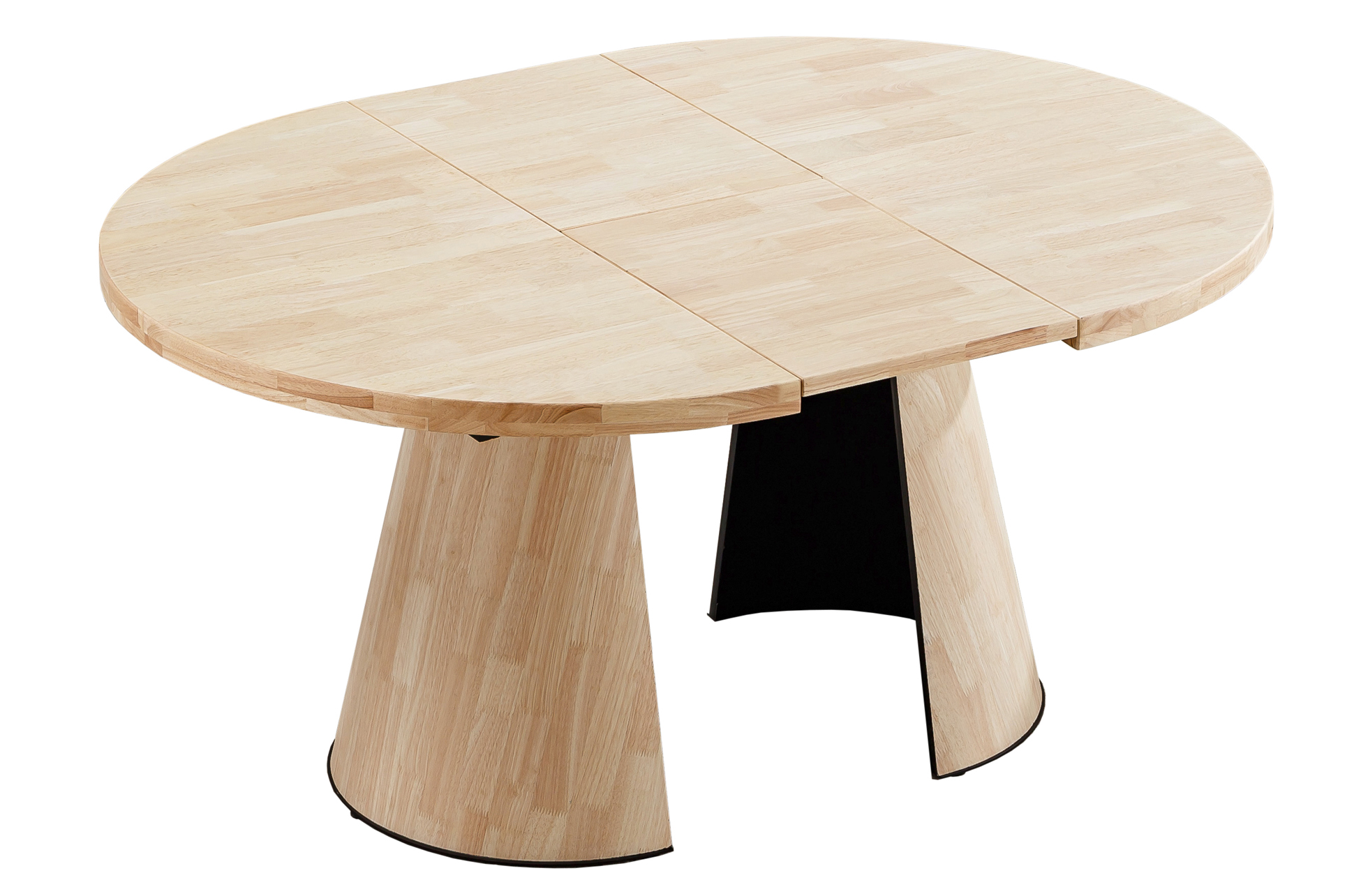 Mesa de comedor extensible de líneas suaves y base central en forma de cono, perfecta para crear un ambiente cálido, moderno y muy práctico en el comedor.