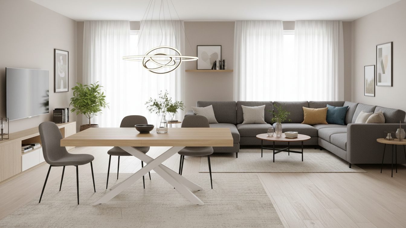 Ofrece gran versatilidad, ya que puede usarse a diario en formato compacto y ampliarse cuando llegan invitados, optimizando el espacio sin renunciar a un diseño actual y atractivo.