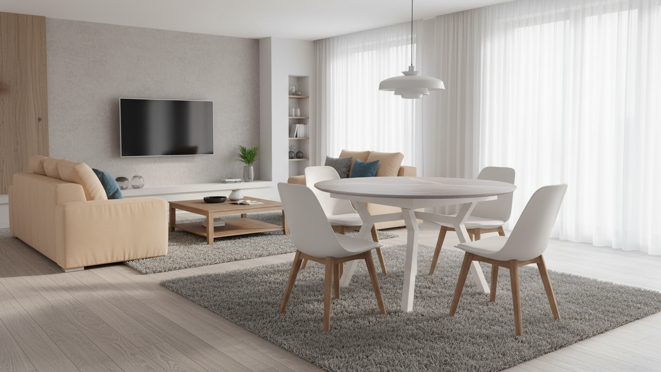 Ofrece versatilidad para adaptarse al número de comensales, ahorra espacio y combina elegancia con durabilidad gracias a sus materiales resistentes.