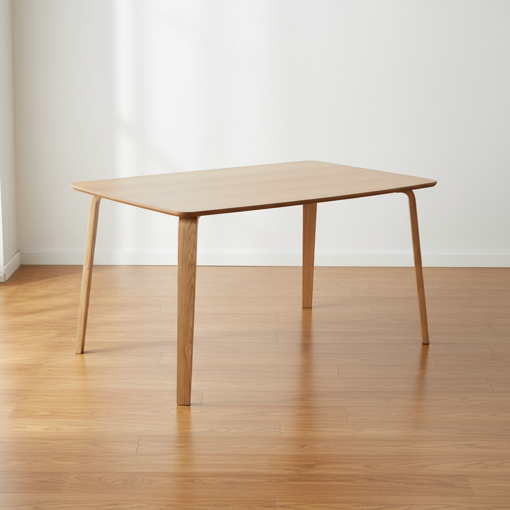 Esta mesa rectangular de roble natural presenta un tablero de MDF con acabado mate y patas de contrachapado de roble, ofreciendo un aspecto cálido y auténtico. Sus patas ligeramente inclinadas en forma de cono proporcionan estabilidad y un toque escandinavo, con bordes redondeados suaves que evitan golpes. Con capacidad para 6 personas, el grosor del tablero de 2 cm asegura robustez sin añadir peso excesivo, pesando alrededor de 36 kg. El color natural resalta las vetas de la madera, integrándose perfectamente en salones luminosos con suelos de madera o blancos. Su construcción en capas de contrachapado garantiza resistencia a la flexión y durabilidad en uso diario interior. Limpia y versátil, combina con sillas de diversos estilos, elevando cualquier comida familiar.