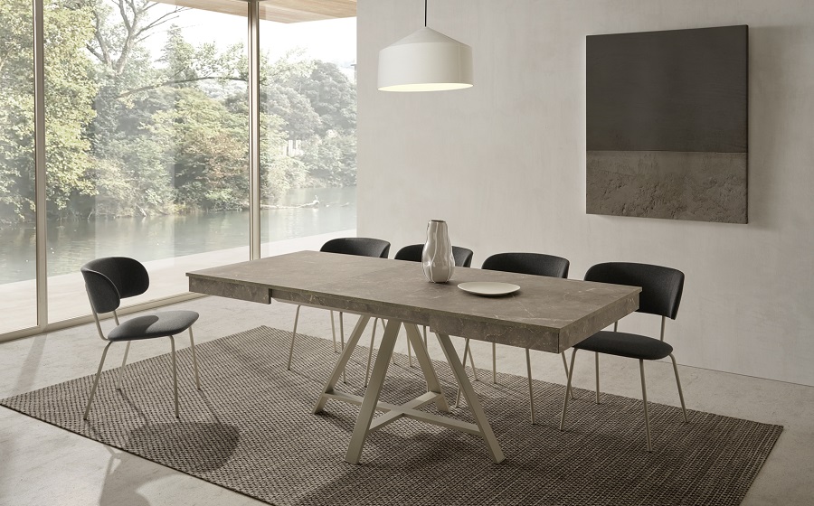 Su diseño incluye una base central metálica, lo que garantiza una gran estabilidad incluso cuando la mesa está extendida. Gracias a su mecanismo extensible automático, se puede abrir y cerrar fácilmente, adaptándose a diferentes situaciones y manteniendo siempre la seguridad y firmeza durante su uso.
