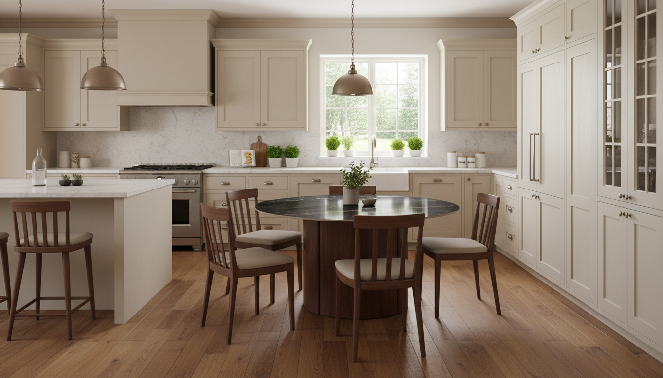 Fomenta la interacción gracias a su forma circular, es resistente a manchas y rayones por la cerámica, y su base estable soporta uso intensivo.