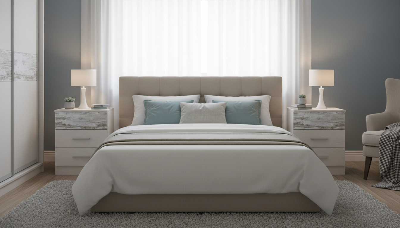Aporta almacenamiento en tres cajones y mantiene a mano lo esencial, ayudando a ordenar el dormitorio sin ocupar demasiado espacio.
