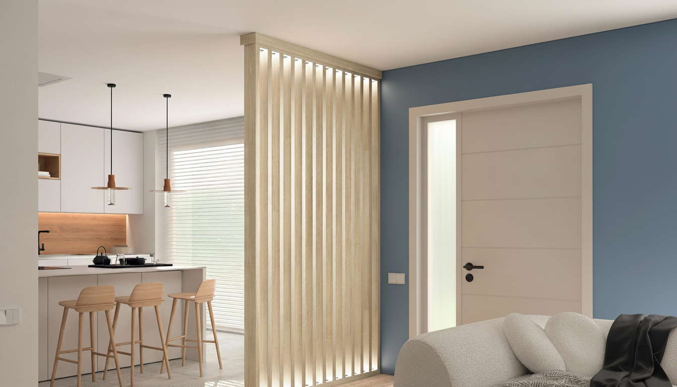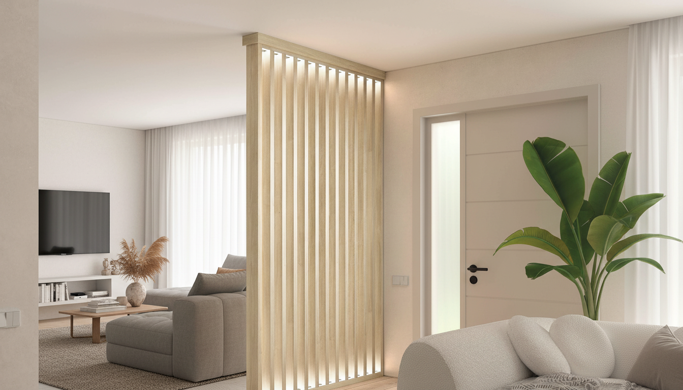 El Panel Alistonado es un divisor elegante y moderno fabricado en roble claro, con listones verticales que crean un efecto luminoso y sofisticado. Ideal para separar espacios interiores como salas o dormitorios, ofrece privacidad parcial y una estética minimalista que integra luz natural. Su estructura de listones encolados asegura estabilidad dimensional, resistencia a deformaciones y durabilidad en entornos cotidianos. Con un acabado natural, aporta calidez y versatilidad decorativa a cualquier ambiente contemporáneo. Fácil de integrar en techos o paredes, mejora la acústica y resalta con iluminación LED indirecta.