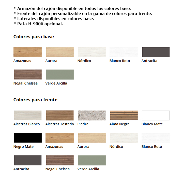 El recibidor H-119 destaca por su diseño moderno y equilibrado, con líneas rectas y acabados combinables que permiten adaptarlo fácilmente a distintos estilos de decoración. Incluye un cajón central que facilita mantener la entrada ordenada y funcional, ideal para almacenar objetos como llaves, correspondencia o accesorios. Además, ofrece opciones personalizables en colores y acabados, así como patas metálicas en negro o dorado, lo que añade un toque de elegancia y robustez.