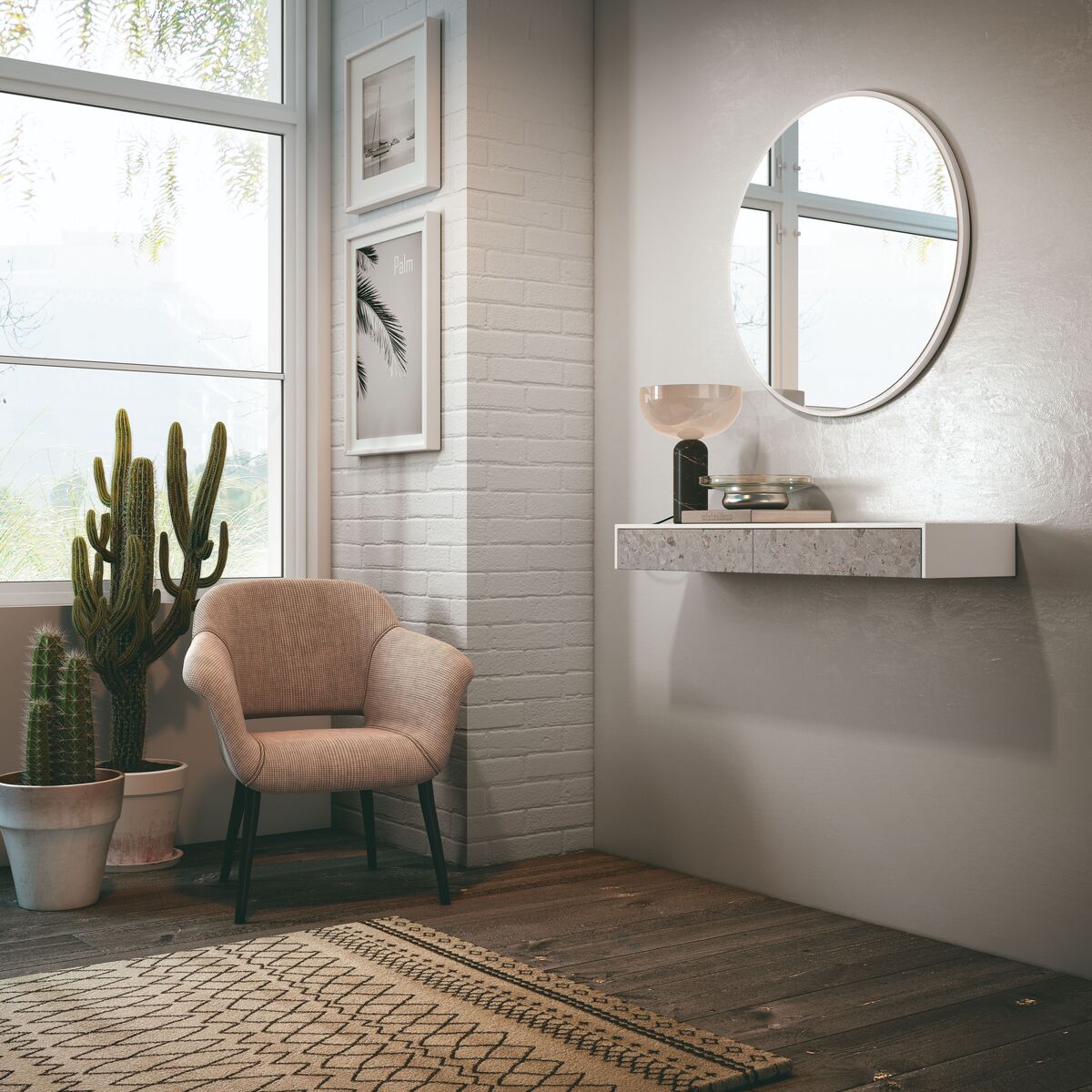 Este recibidor suspendido destaca por su diseño minimalista y funcional, ideal para entradas actuales y espacios reducidos. Su silueta alargada aporta ligereza visual y ayuda a mantener el ambiente despejado, dejando el suelo libre para facilitar la limpieza. Incorpora dos amplios cajones frontales que permiten guardar llaves, documentación u otros objetos cotidianos, manteniendo el orden al llegar a casa. La combinación de líneas rectas y acabados lisos encaja a la perfección en decoraciones modernas o de estilo nórdico. Es una pieza versátil que puede acompañarse de un espejo o cuadros para crear un rincón de bienvenida acogedor.