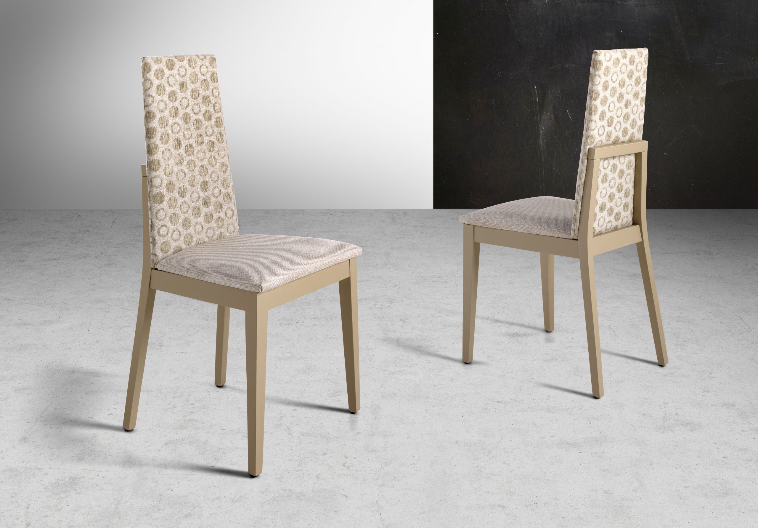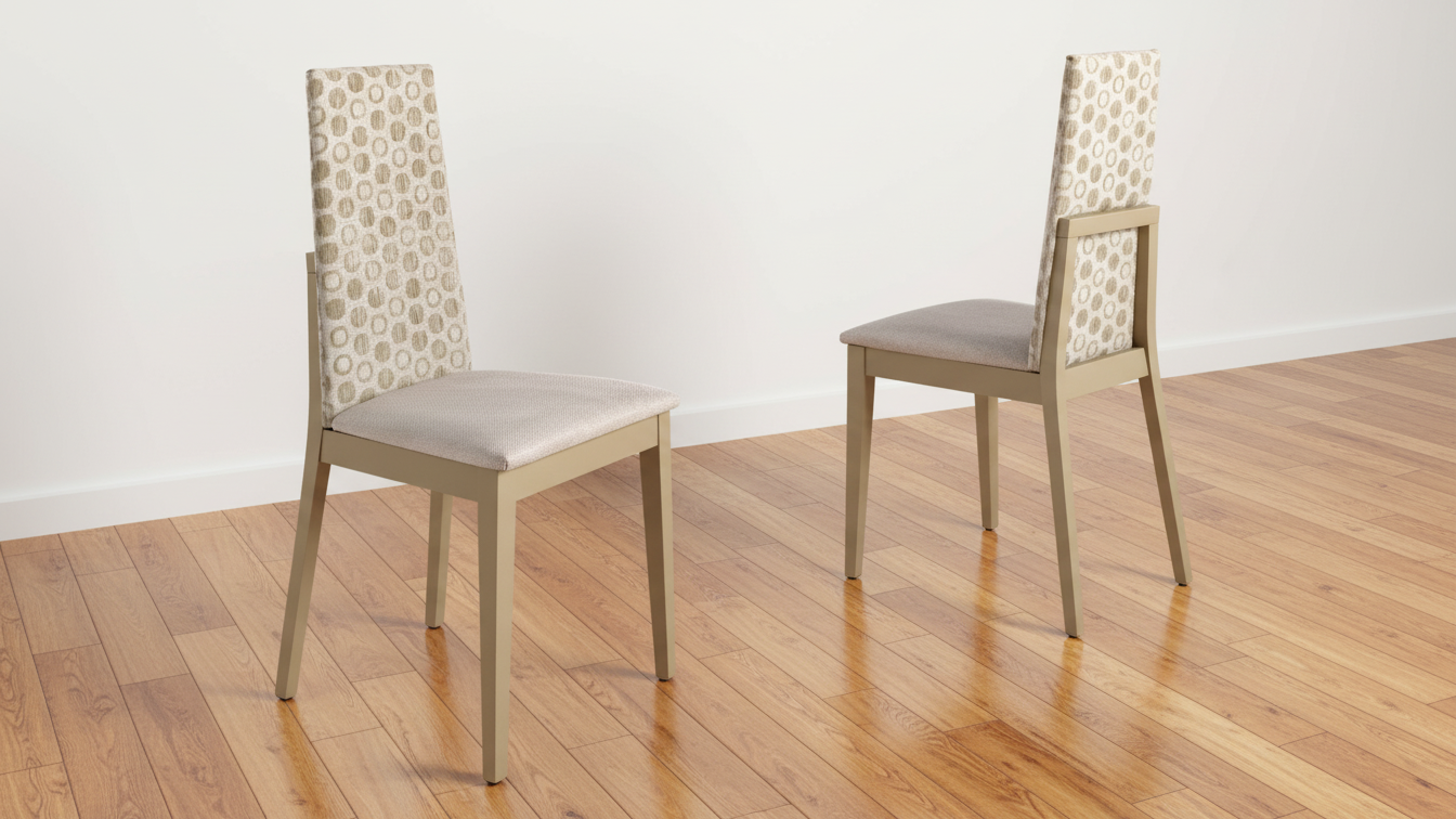 Silla de diseño contemporáneo, de líneas rectas y aspecto ligero, ideal para comedores actuales o espacios de trabajo en casa. El respaldo alto está tapizado con un tejido de suave relieve geométrico, que aporta un toque decorativo discreto y elegante. El asiento acolchado ofrece una comodidad notable para uso diario, gracias a su grosor y a la textura agradable del tapizado. La estructura presenta cuatro patas rectas ligeramente abiertas hacia atrás, lo que mejora la estabilidad y aligera visualmente la pieza. Su estilo versátil permite combinarla fácilmente con mesas modernas o ambientes más clásicos.