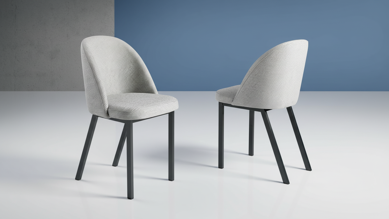 Silla tapizada de diseño contemporáneo, con respaldo envolvente de líneas suaves y asiento amplio y mullido para mayor confort. Estructura de cuatro patas rectas y resistentes, ideal para salones, comedores u oficinas modernas.