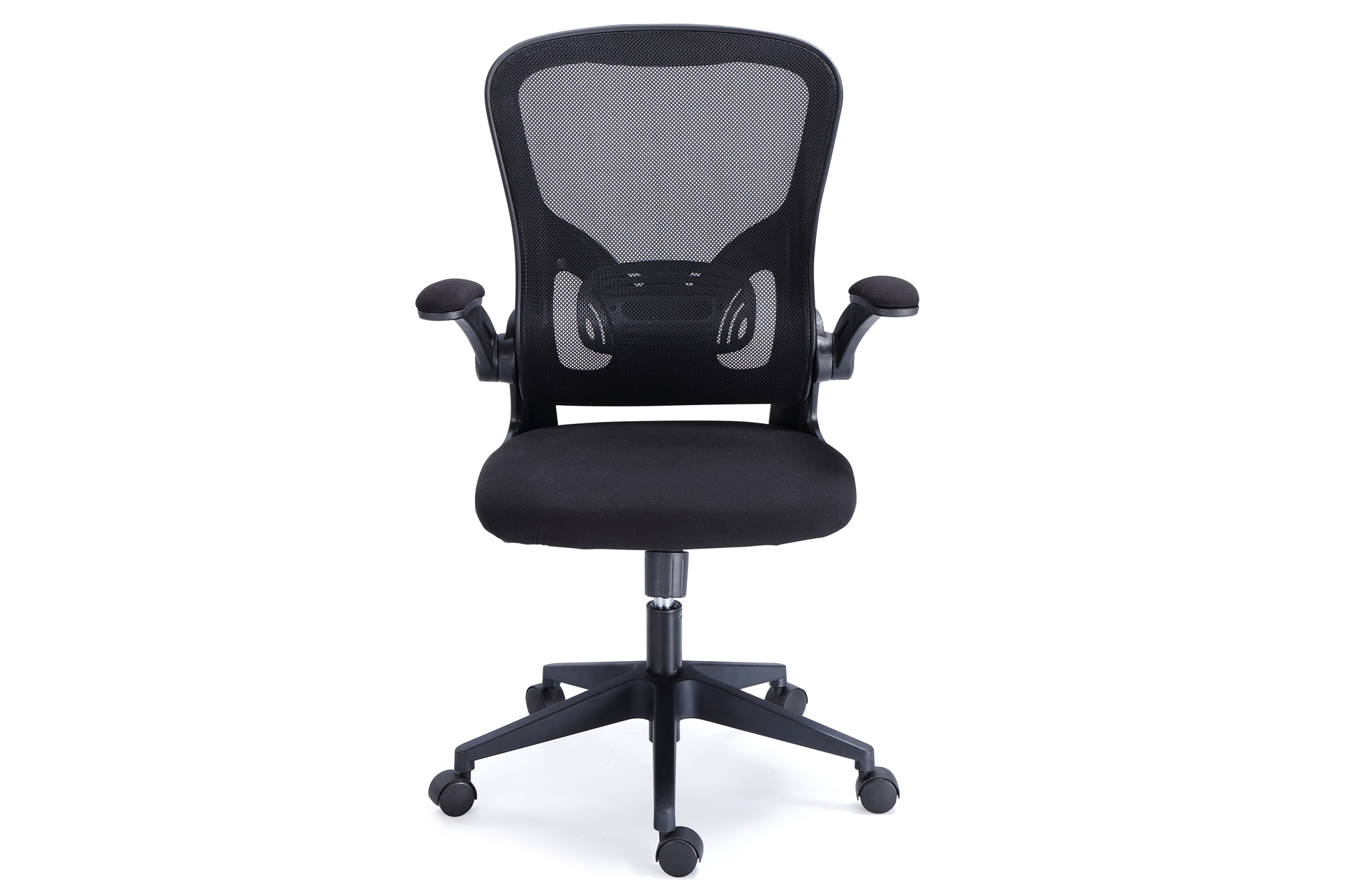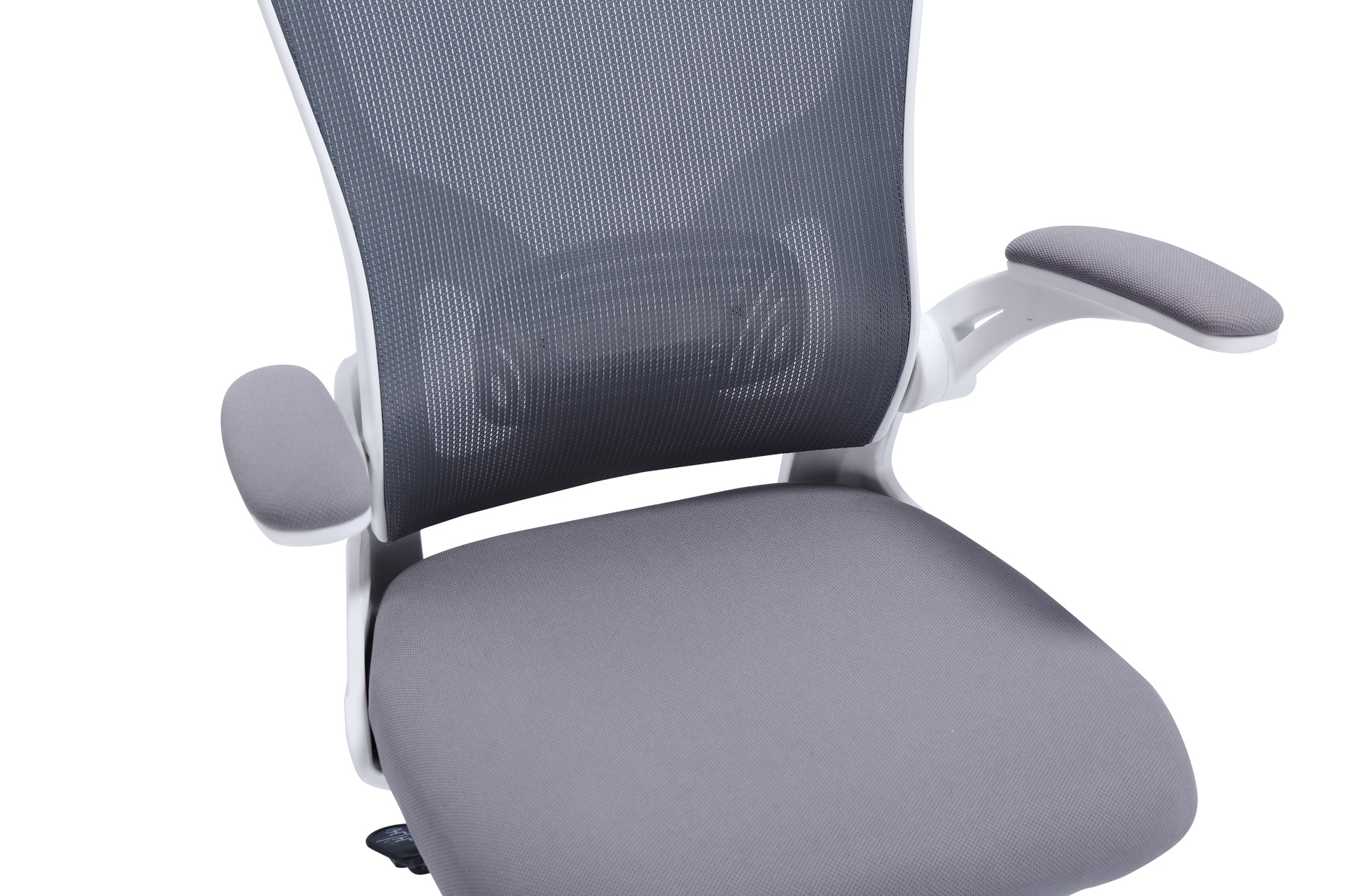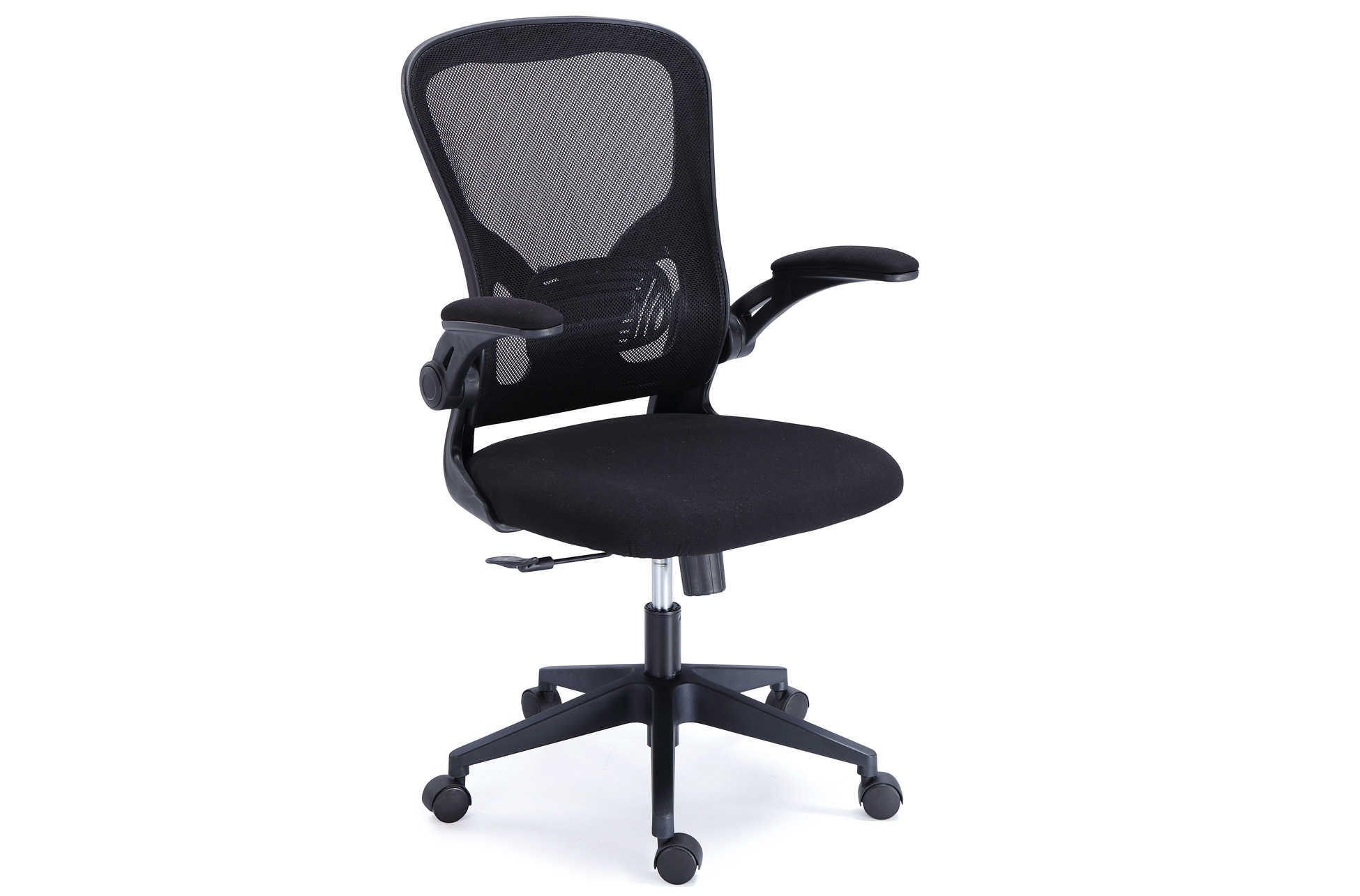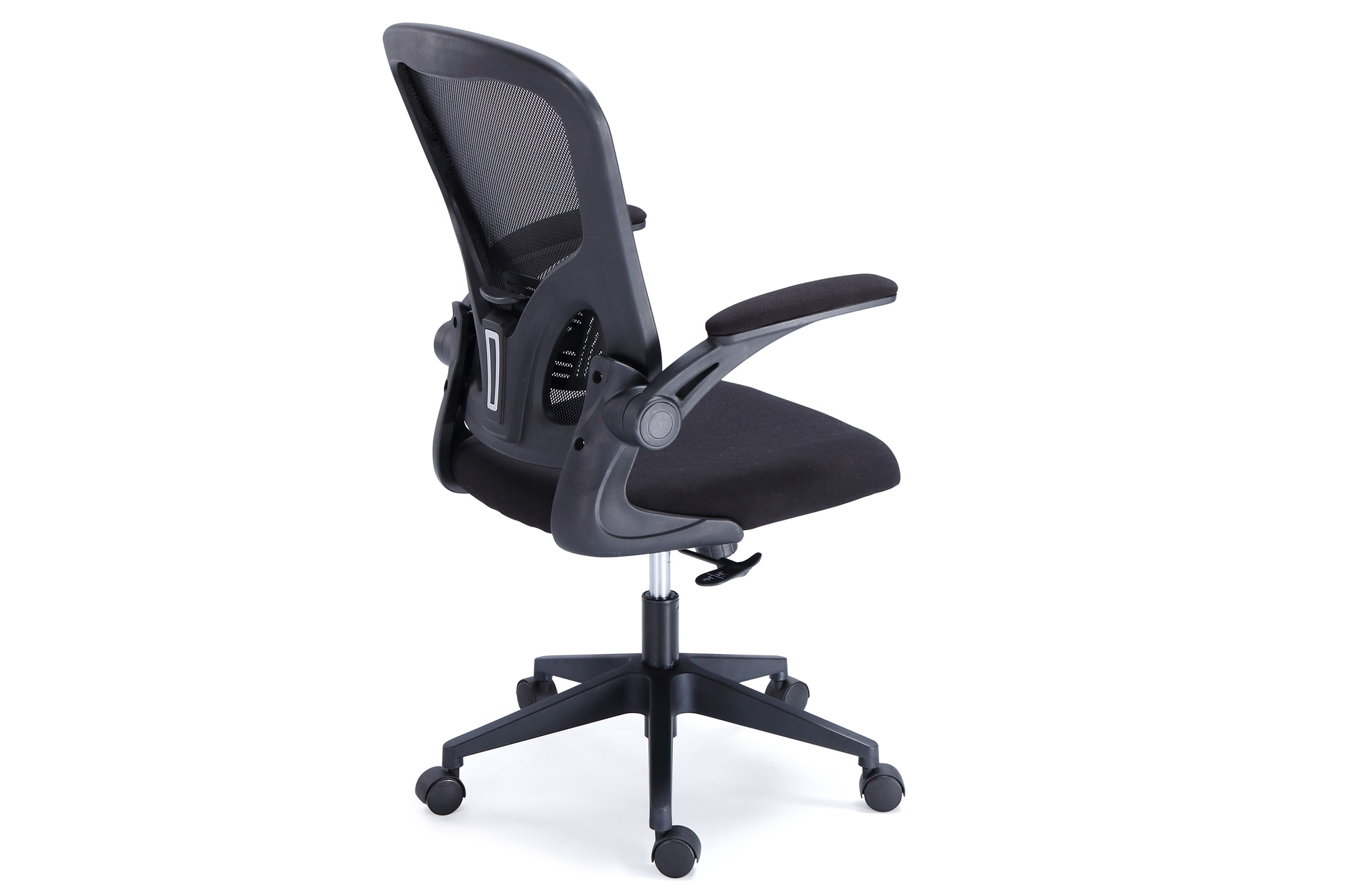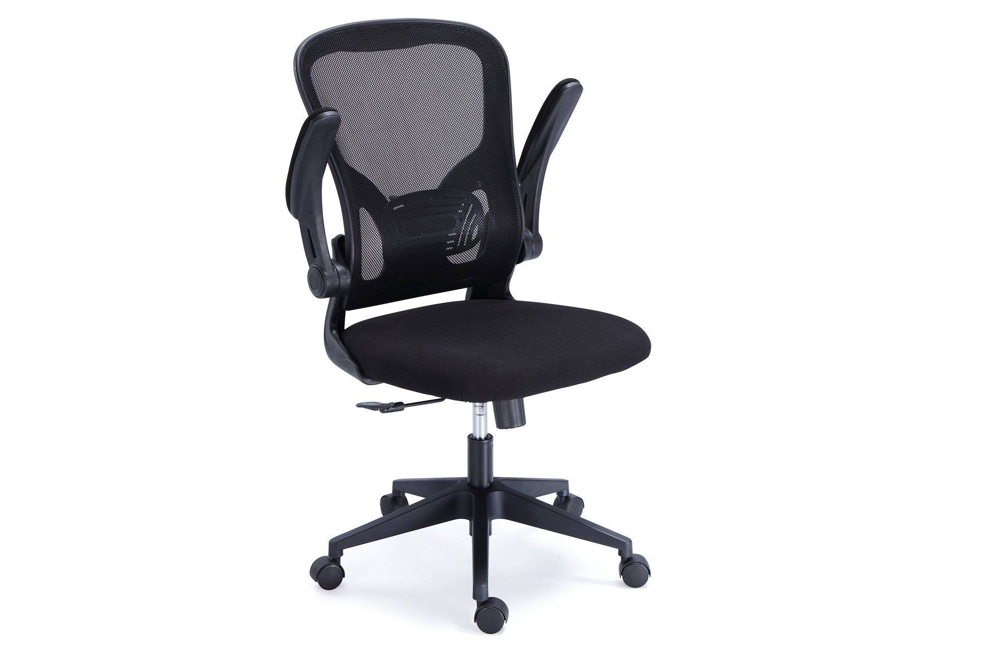 Silla de oficina ergonómica con respaldo de malla transpirable y asiento acolchado que ofrece una gran comodidad para largas jornadas de trabajo. Incorpora reposabrazos abatibles que permiten acercarse mejor a la mesa y ahorrar espacio bajo el escritorio. La base giratoria de cinco radios con ruedas facilita el desplazamiento suave y estable sobre diferentes suelos, mientras que el sistema de elevación a gas permite ajustar la altura para adaptarse a cada usuario. Su diseño favorece una postura correcta y un buen apoyo lumbar, ideal para oficinas, despachos y zonas de estudio en casa.