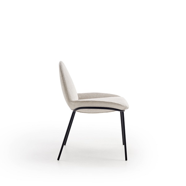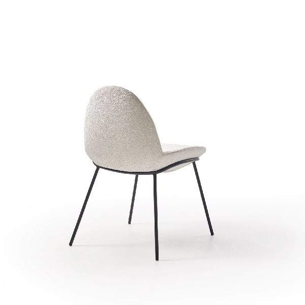 La silla LLIDO destaca por su diseño contemporáneo y líneas suaves, ideal para ambientes modernos y minimalistas. Su respaldo curvado proporciona comodidad y soporte ergonómico. El asiento, de generosas dimensiones, mantiene la misma tapicería y forma envolvente. La estructura se sostiene sobre cuatro patas metálicas finas, lacadas en negro, lo que aporta estabilidad sin sacrificar ligereza visual. Su composición de materiales de calidad garantiza durabilidad, mientras que el estilo refinado y funcional la convierte en una pieza versátil para comedor, oficina o salón.