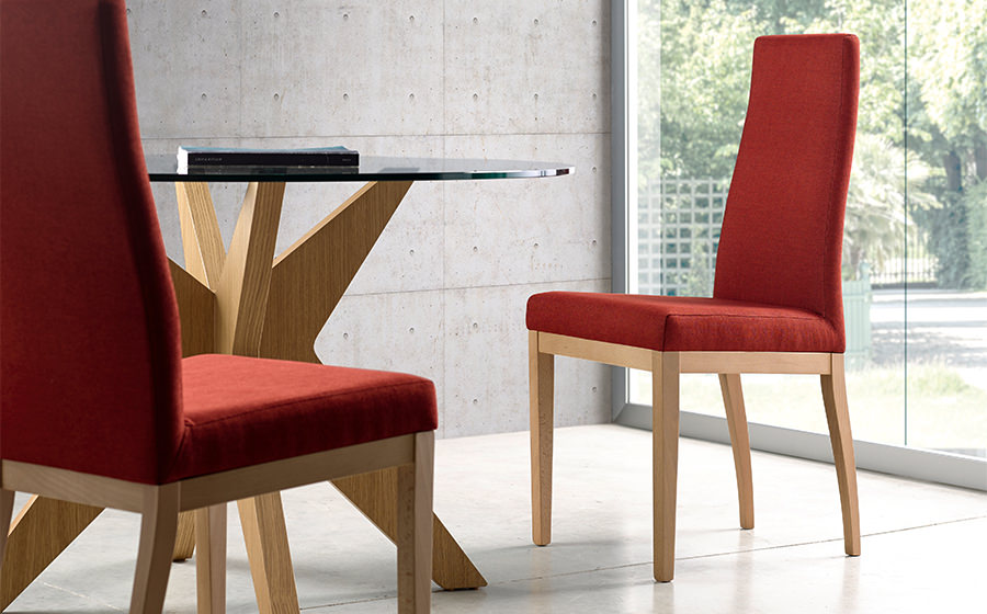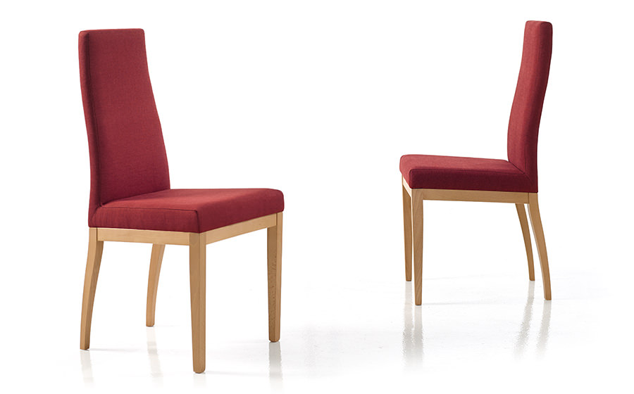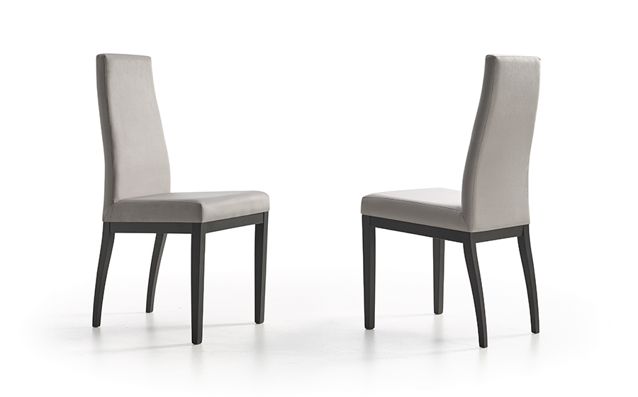 Silla de diseño contemporáneo de líneas rectas y respaldo alto. Su estructura está fabricada en madera maciza, que aporta estabilidad y durabilidad. El asiento y el respaldo están acolchados y tapizados en un tejido sintético, ofreciendo comodidad ergonómica y fácil limpieza. Las patas traseras presentan una ligera curvatura hacia fuera para mejorar la estabilidad. Este modelo resulta ideal para comedores modernos o salas de reuniones, gracias a sus proporciones equilibradas, su presencia elegante y su construcción robusta. El diseño optimiza la combinación de confort y estética sofisticada.