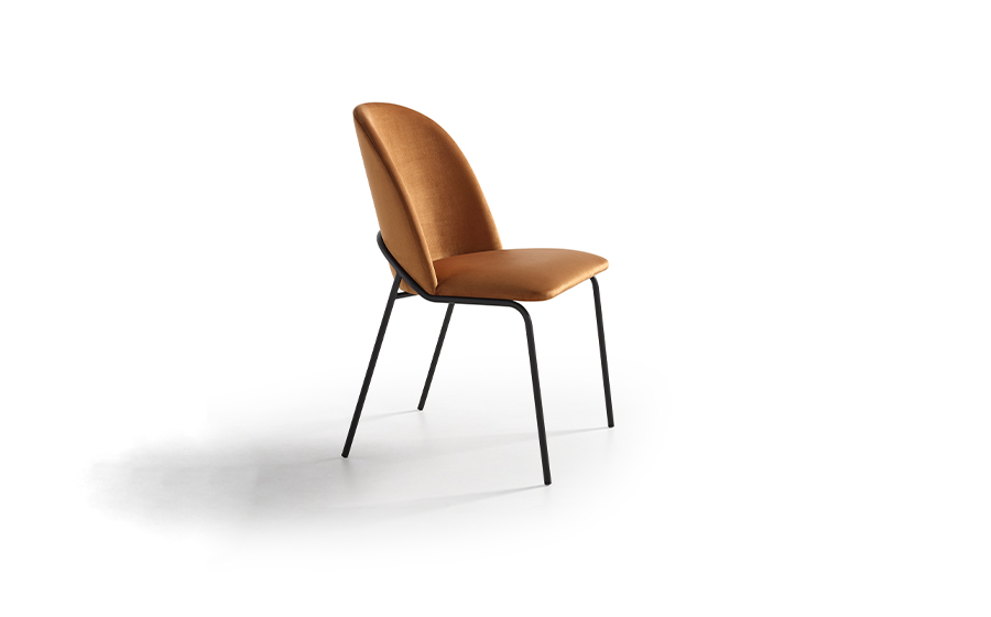 Silla moderna con estructura metálica y tapizado. Su diseño elegante y curvado aporta comodidad y estilo, perfecta para comedor, oficina o espacios contemporáneos.