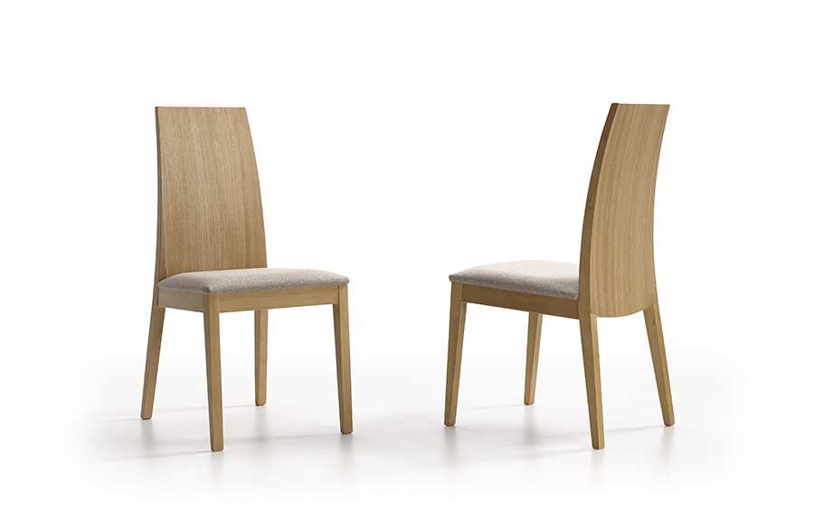 Silla de comedor, estilo contemporáneo, fabricada en madera con un respaldo alto y ligeramente curvado, lo que aporta ergonomía y confort al usuario. El acabado en madera clara resalta las vetas naturales, otorgando un toque cálido y elegante al diseño. El asiento está acolchado y tapizado en un tejido claro, suave y resistente, que facilita la limpieza y el mantenimiento diario. Las patas, de sección rectangular, aseguran una buena estabilidad y robustez. Es una pieza adecuada tanto para salones modernos como para espacios de hostelería donde se valore la estética y la funcionalidad.