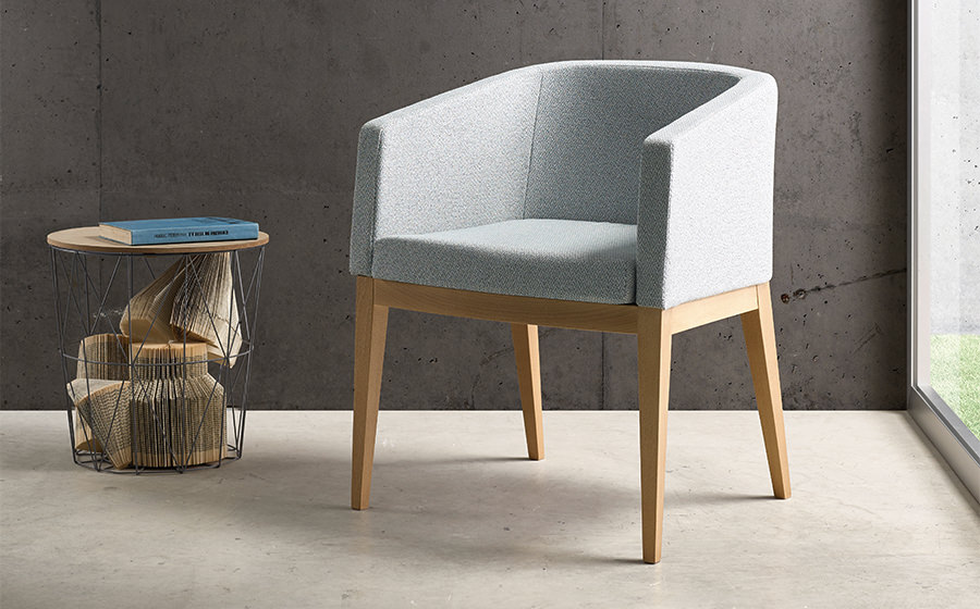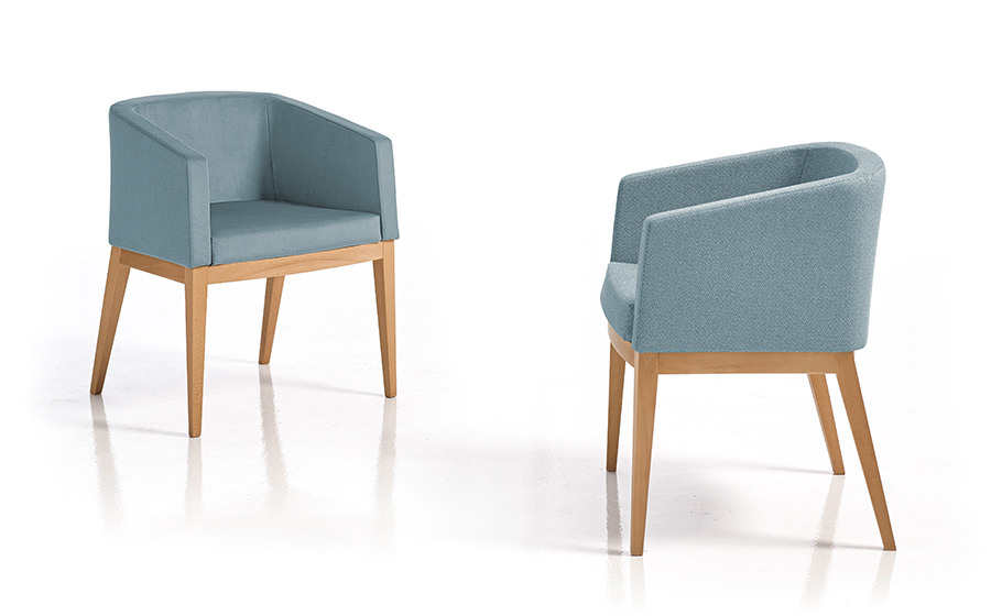 Silla moderna con estructura de madera y tapizado en azul claro, ideal para oficinas, salas de espera o espacios de diseño contemporáneo. Ofrece comodidad y elegancia, combinando líneas rectas y acabados de calidad en un formato compacto y versátil.