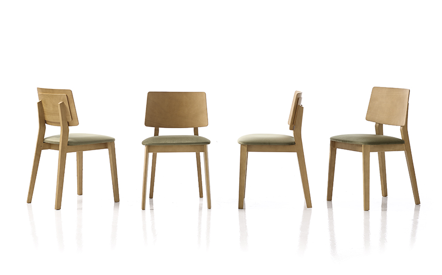 Silla de diseño moderno con estructura de madera y asiento tapizado en tono claro. Ideal para comedores o espacios de trabajo, combina líneas sencillas y gran comodidad, aportando calidez y estilo a cualquier ambiente.